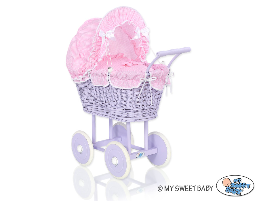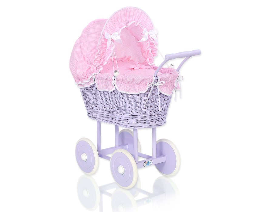 Etusivu » Lelut » Nukenvaunut » Punottu Nukenvaunut » Punottu Nukenvaunut Liila » Liila nuken vaunu korikehdolla Violetti Vaaleanpunainen Ruutukuvio