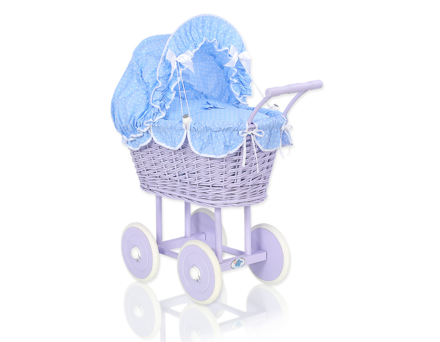 Etusivu » Lelut » Nukenvaunut » Punottu Nukenvaunut » Punottu Nukenvaunut Liila » Liila nuken vaunu korikehdolla Violetti Valkoinen Sininen