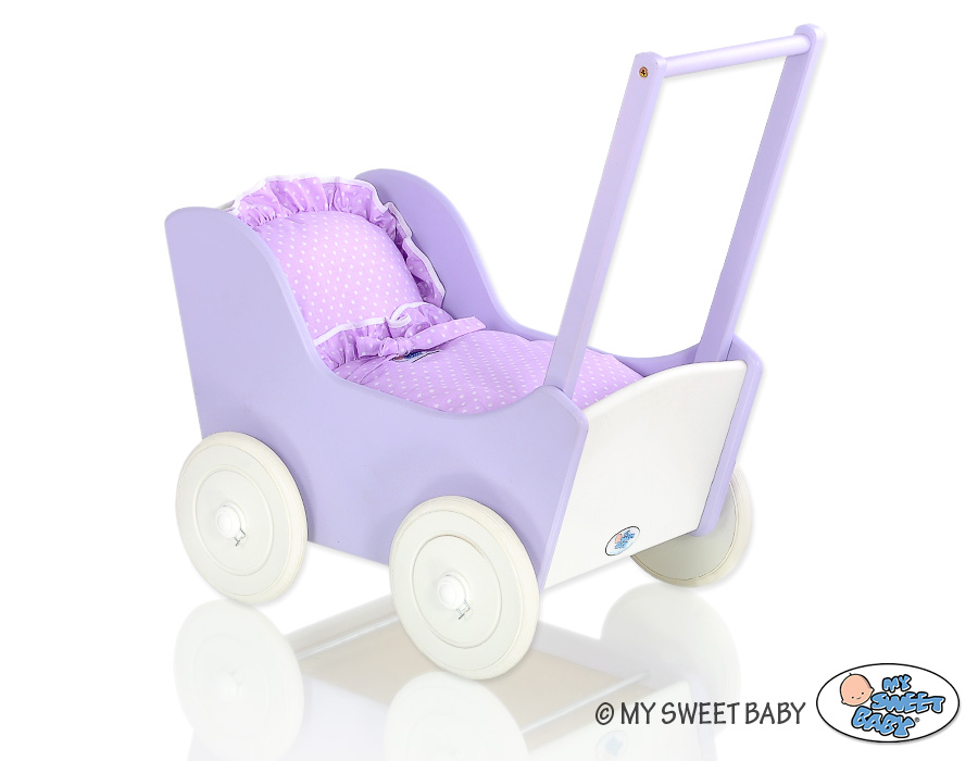 Liila puiset nuken vaunut Violetti Valkoinen