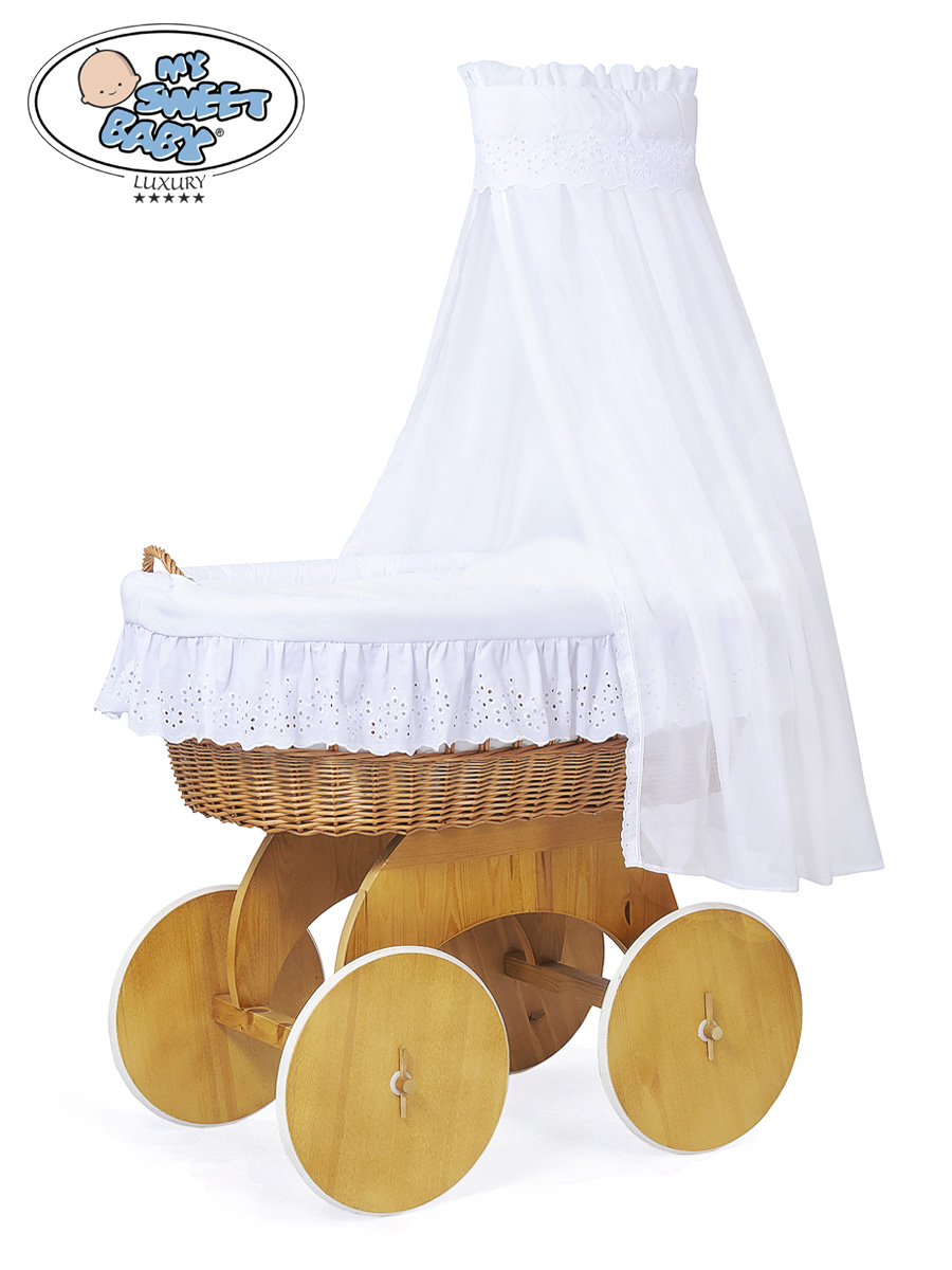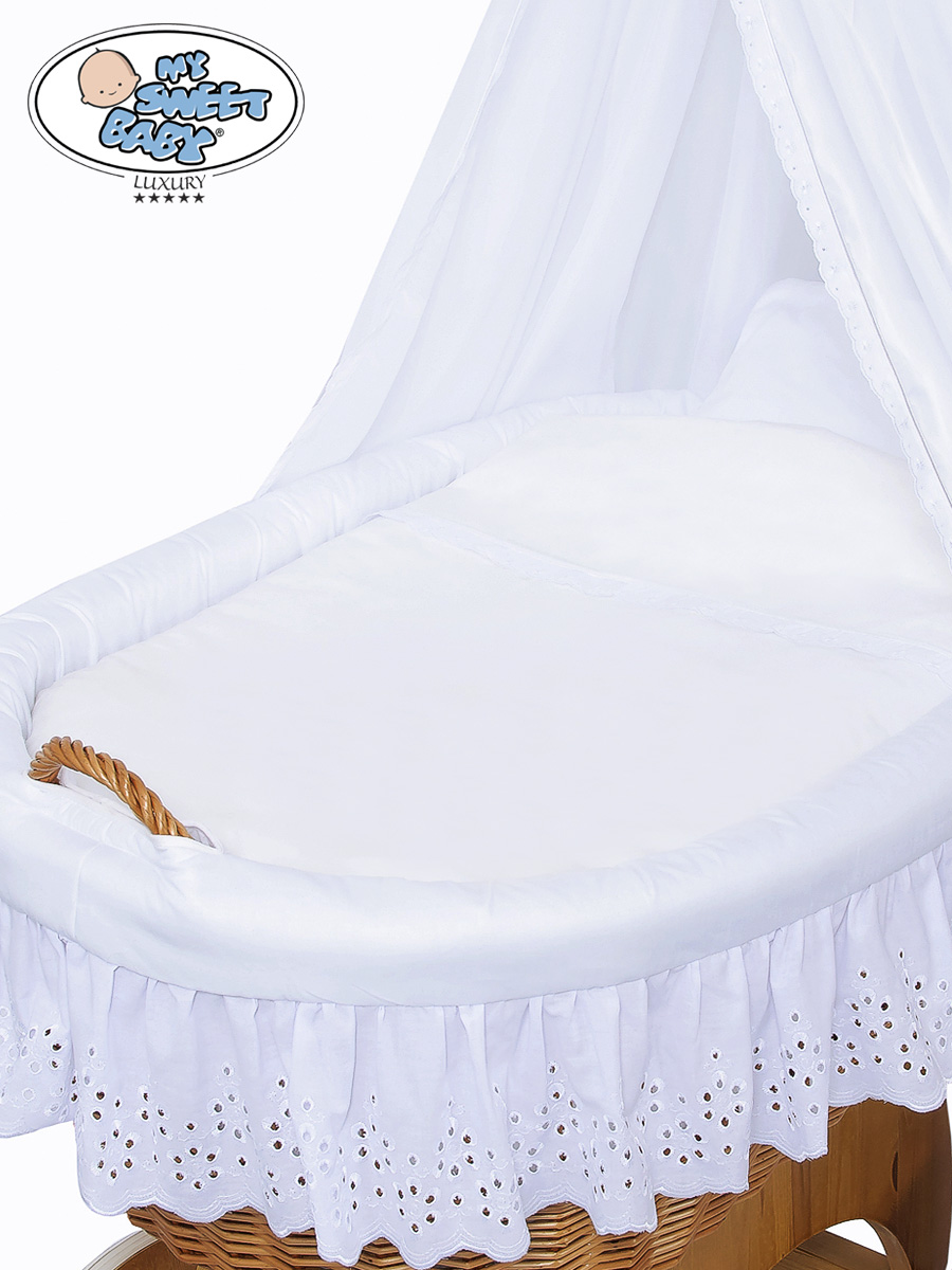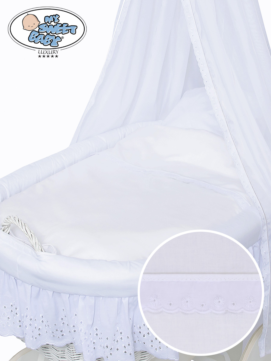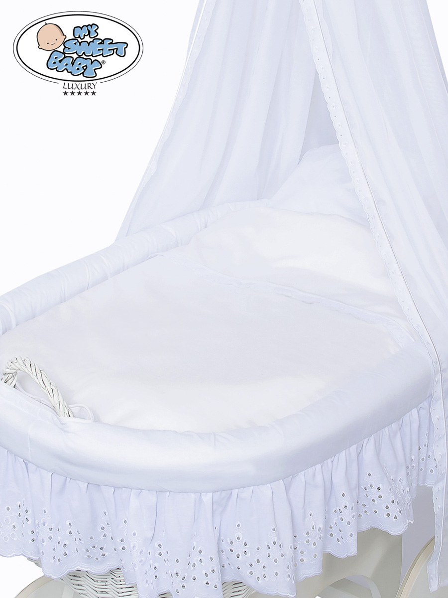 Etusivu » Vauvankori » Vauvankori My Sweet Baby Luxury » Vauvan kehto pyörillä ja verholla » 4-os lisäpeitesetti » Lisäpeitesetti punottuun kehtokoriin Sophia