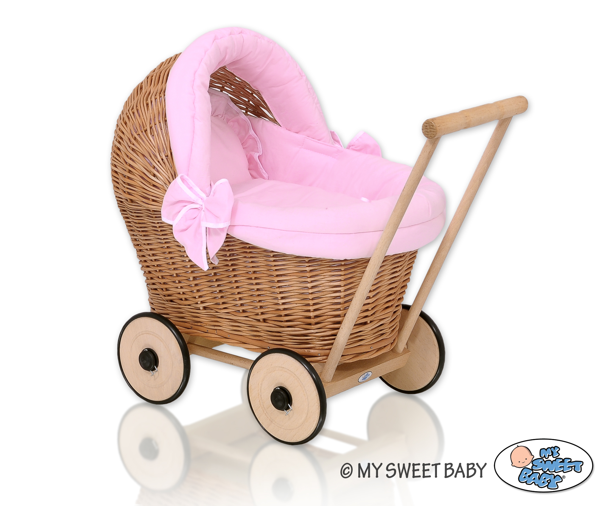 Etusivu » Lelut » Nukenvaunut » Punottu Nukenvaunut » Nukenvaunut koripunosta » Luonnollisen väriset nuken vaunut punotulla korilla ja pehmusteilla