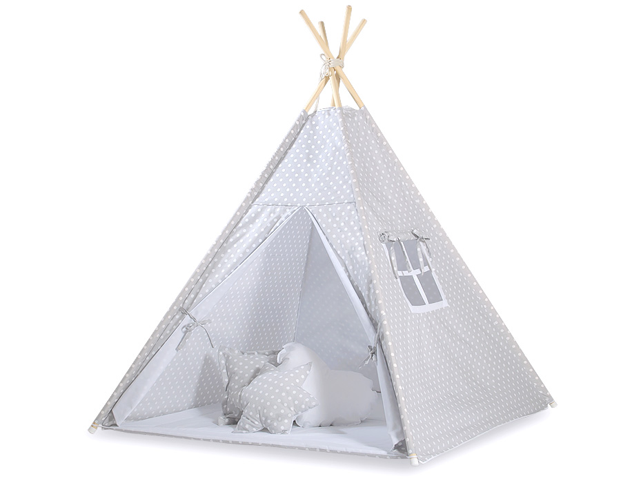 Etusivu » Lelut » Lasten Tiipii-teltat » Minisetti: Lasten tiipii-teltta + leikkimatto » Minisetti: Lasten tiipii-teltta + leikkimatto (+ koristehöyhenet ILMAISEKSI!) Harmaa Valkoisilla Pilkuilla