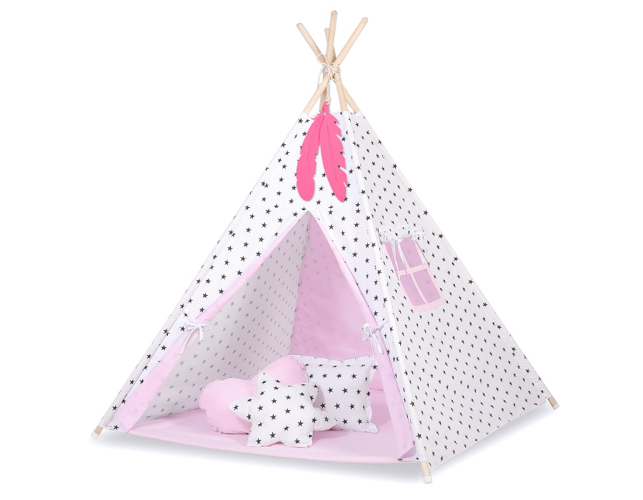 Tämä tiipii-setti on hulvattoman hauska leikkiteltta ja ihana ajanviettopaikka kaverikutsuilla. Lapsi voi leikkiä ystäviensä kanssa tai vaikka rentoutua ja lukea kirjaa! Sopii mainiosti lastenhuoneeseen, leikkihuoneeseen tai jopa ulos pihalle.