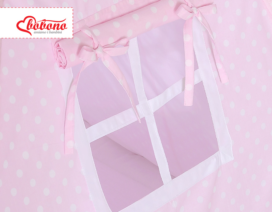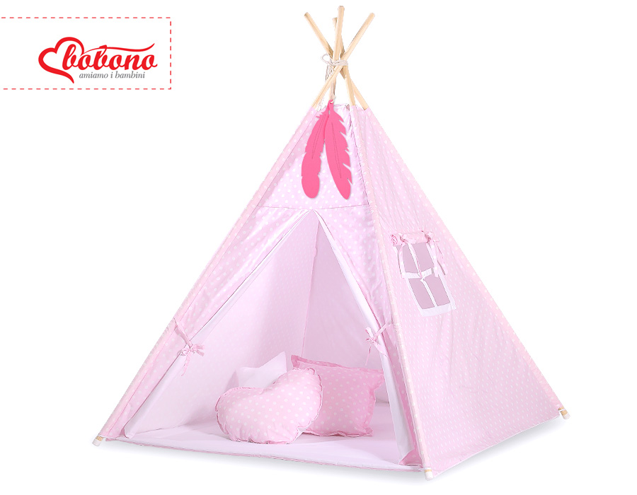 Minisetti: Lasten tiipii-teltta + leikkimatto (+ koristehöyhenet ILMAISEKSI!) Vaaleanpunainen Valkoisilla Pilkuilla