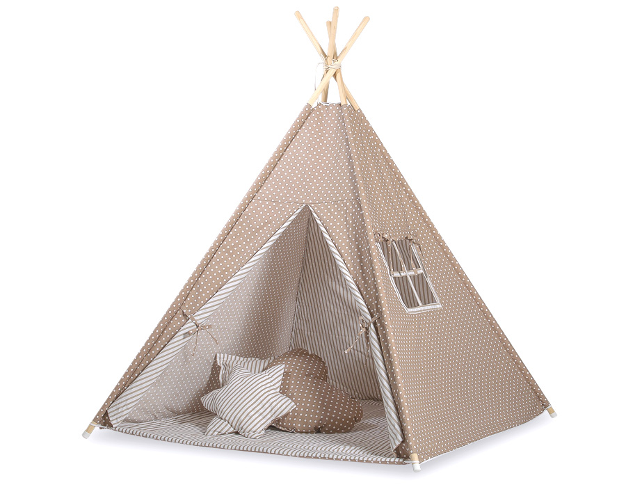 Tiipii on täydellinen leikkipaikka lastenhuoneeseen, leikkihuoneeseen, sopii syntymäpäivälahjaksi, piilopaikaksi, lukunurkaksi, rantateltaksi, piknikille tai puistoon, lastenjuhliin tai kuvauspaikaksi.