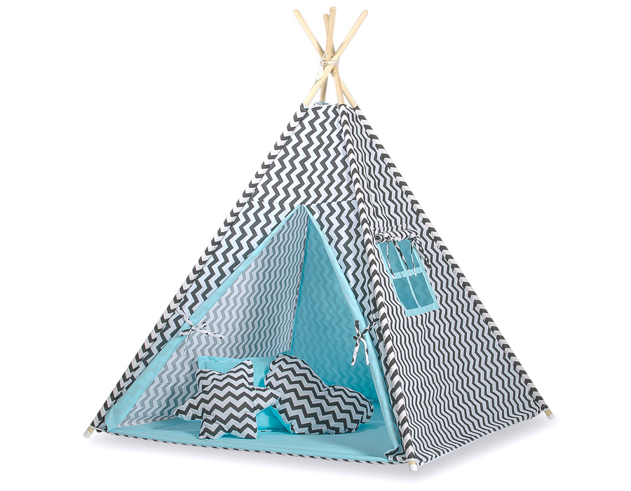 Etusivu » Lelut » Lasten Tiipii-teltat » Minisetti: Lasten tiipii-teltta + leikkimatto » Minisetti: Lasten tiipii-teltta + leikkimatto (+ koristehöyhenet KAUPAN PÄÄLLE!) Musta Sininen Siksak