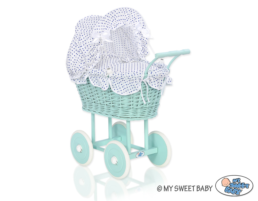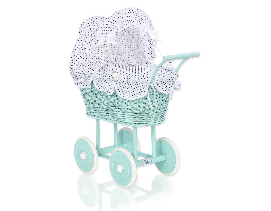 Mintun nuken vaunu punotulla korilla ja pehmusteilla Minttu Valkoinen Laivastonsininen Valkoisilla PilkuillaMintun nuken vaunu punotulla korilla ja pehmusteilla Minttu Valkoinen Laivastonsininen Valkoisilla PilkuillaMintun nuken vaunu punotulla korilla ja pehmusteilla Minttu Valkoinen Laivastonsininen Valkoisilla Pilkuilla