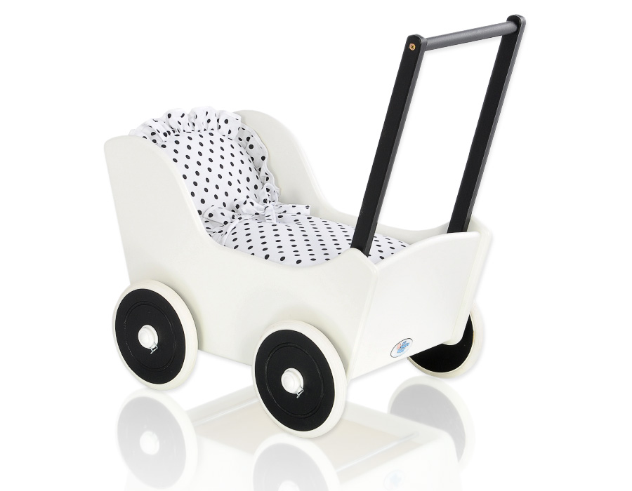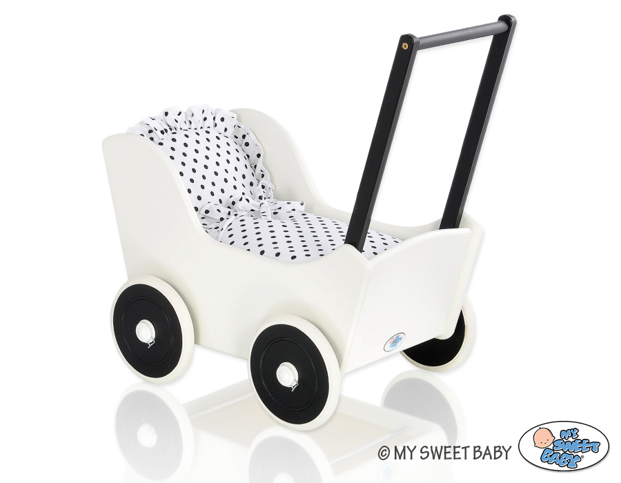 Mustavalkoinen Puinen nuken vaunu Valkoinen Musta