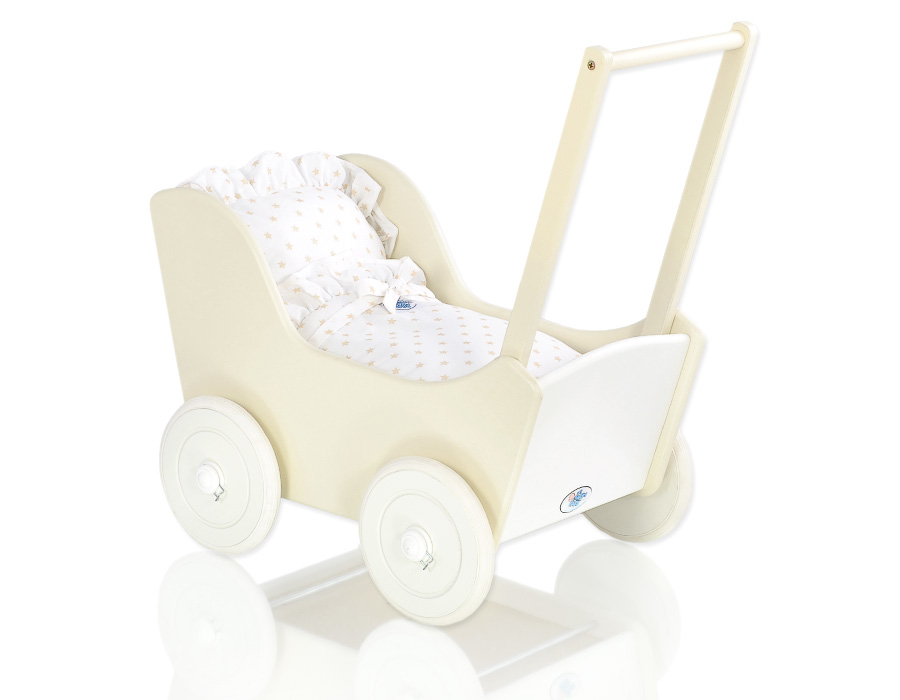 Täydellinen lahja pikkuiselle tytölle (tai pojalle!). Nuken vaunut on yksi suosituimmista lasten toiveleluista. Valmistettu turvallisista materiaaleista ja maalattu ekologisella maalilla.