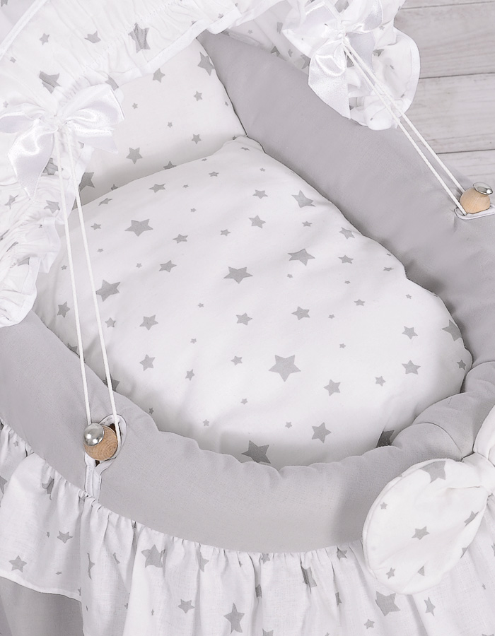 Etusivu » Lelut » Nukenvaunut » Vauvankori nukeille » Nuken kehto kuvulla Harmaa