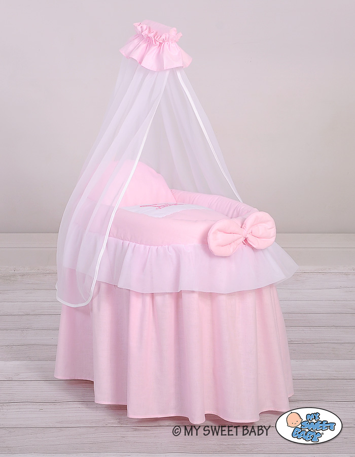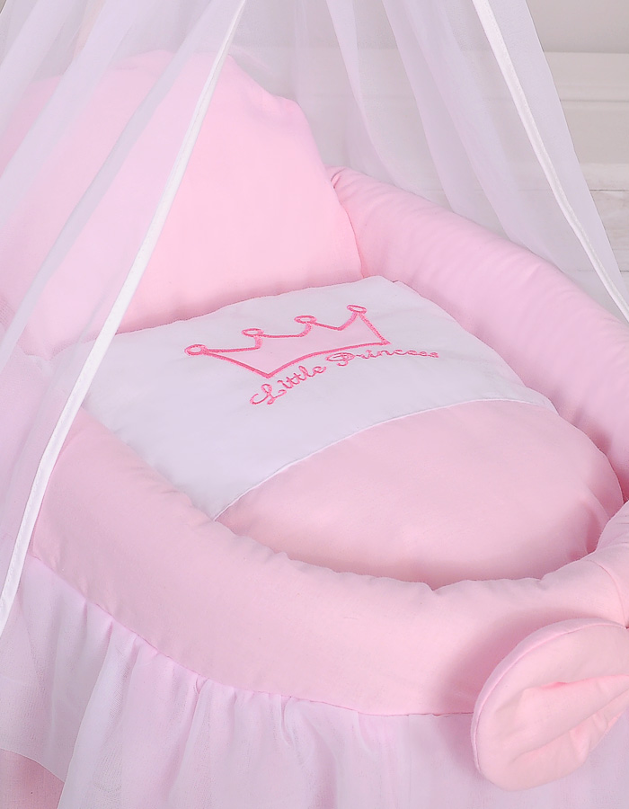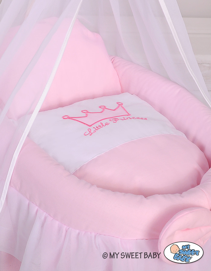 My Sweet Baby -korikehdot nukeille ovat erittäin korkealaatuisia ja mahtavia tuotteita lasten käyttöön. Korit ovat punottua pajunvitsaa ja runko puuta, romanttisissa väreissä. Jokainen yksityiskohta on kauniisti ja tarkasti toteutettu käsityönä. Koristetekstiili valuu kauniisti lattiaan saakka, ihanat röyhelöt ja kaiken kukkuraksi suuri kruunu "Little Princess" -tekstillä luo prinsessamaisen tunnelman. Sopii täydellisesti pikkuiselle tytölle (tai miksei pojallekin!).