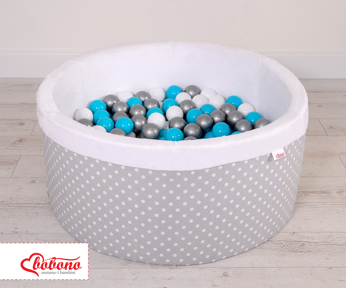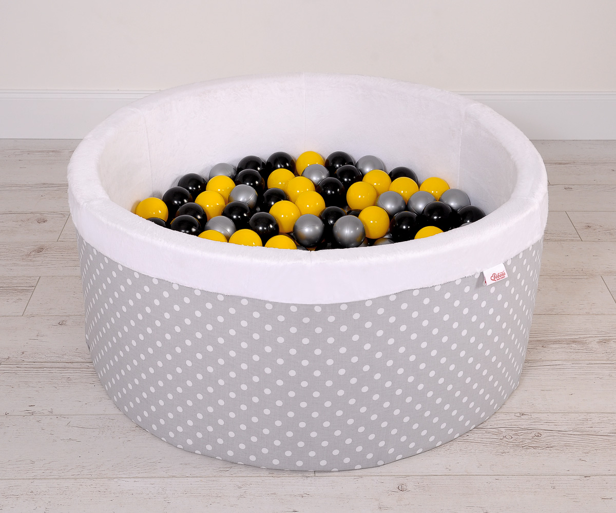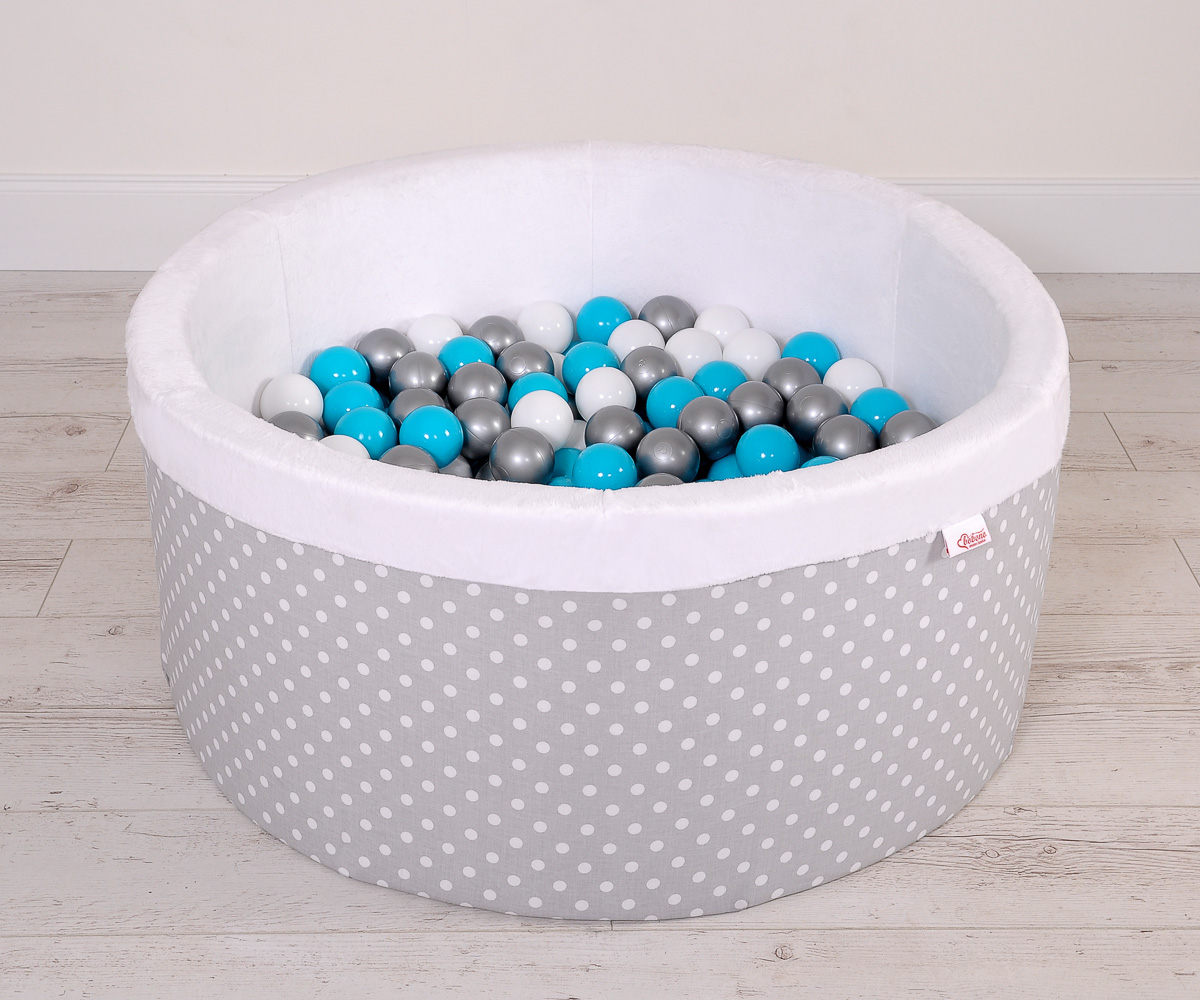 Etusivu » Lelut » Pallomeriallas » Pallomeri palloilla (oma värisekoitus) » Pallomeri (+ pallot 200kpl) Harmaa Valkoisilla Pilkuilla