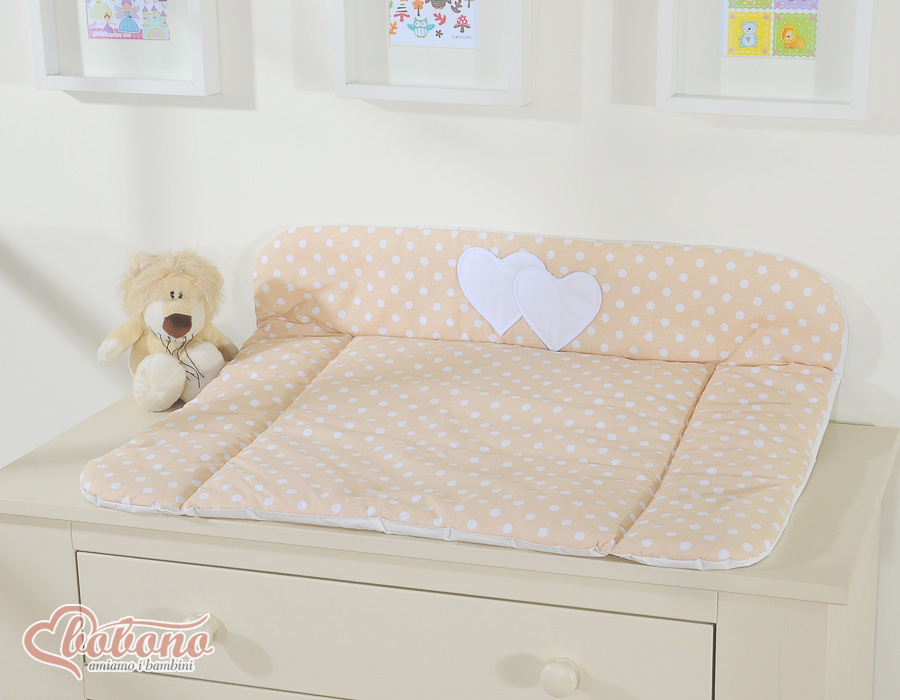 Pehmeä vaipanvaihtoalusta - Hanging Hearts Beige Valkoisilla PilkuillaPehmeä vaipanvaihtoalusta - Hanging Hearts Beige Valkoisilla Pilkuilla