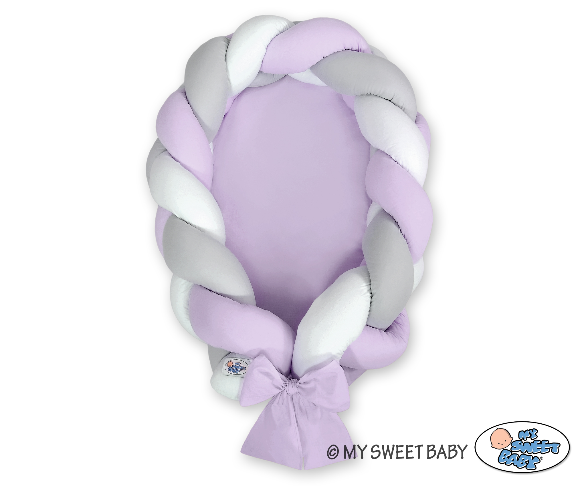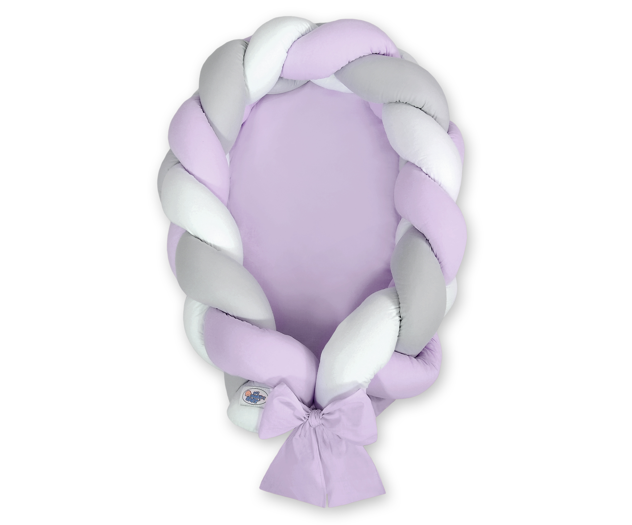 Etusivu » Letti kokoelma » Unipesä Reunapehmuste Letti 2in1 » Pesä vauvalle letti + solmupehmusteella Violetti Valkoinen Harmaa