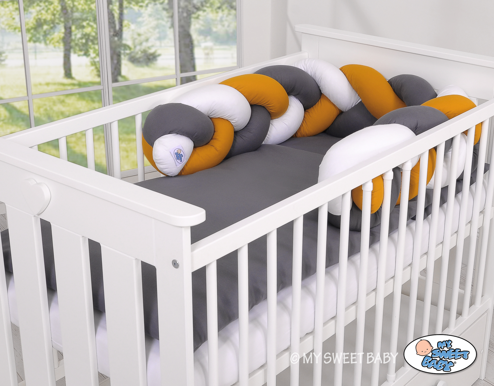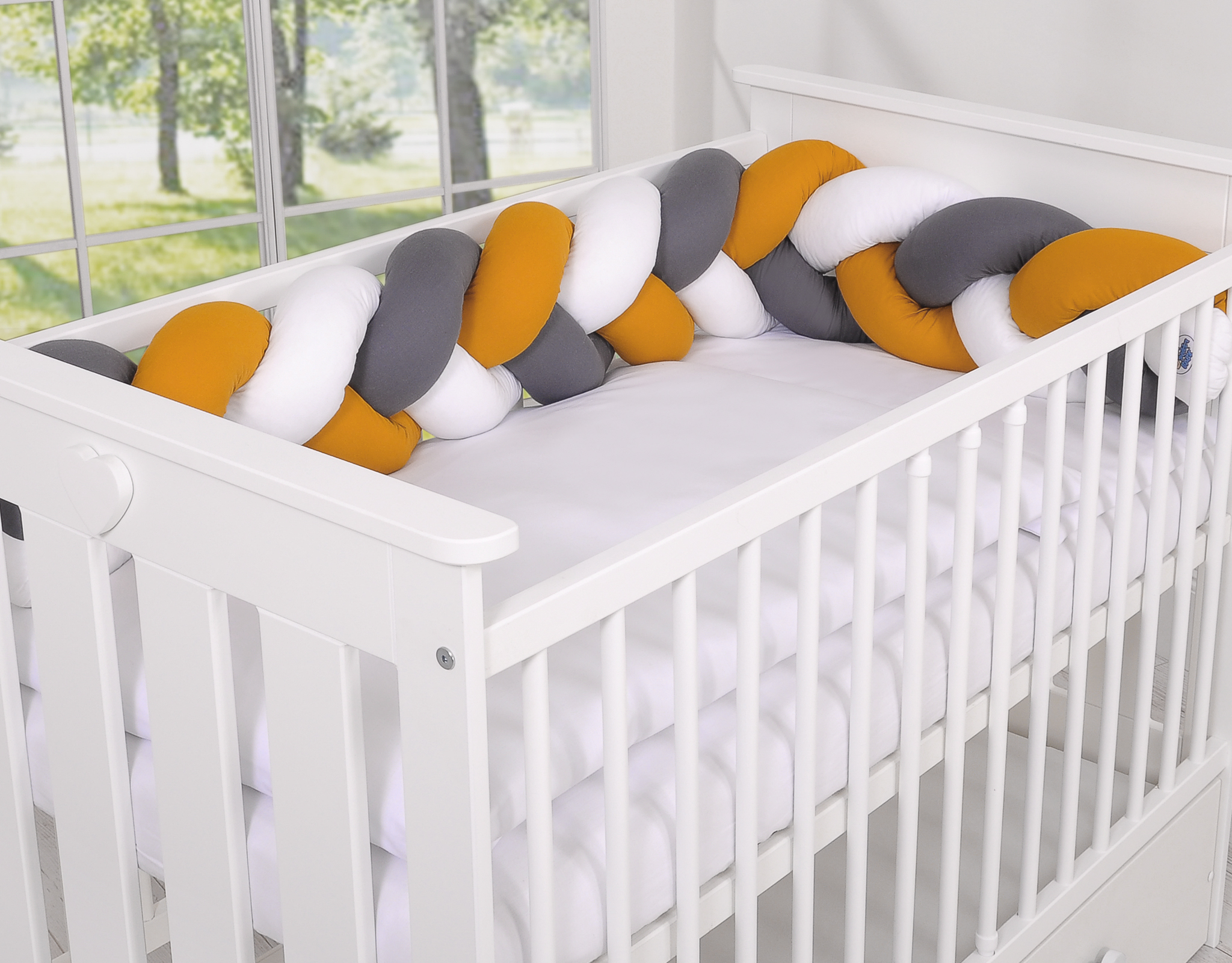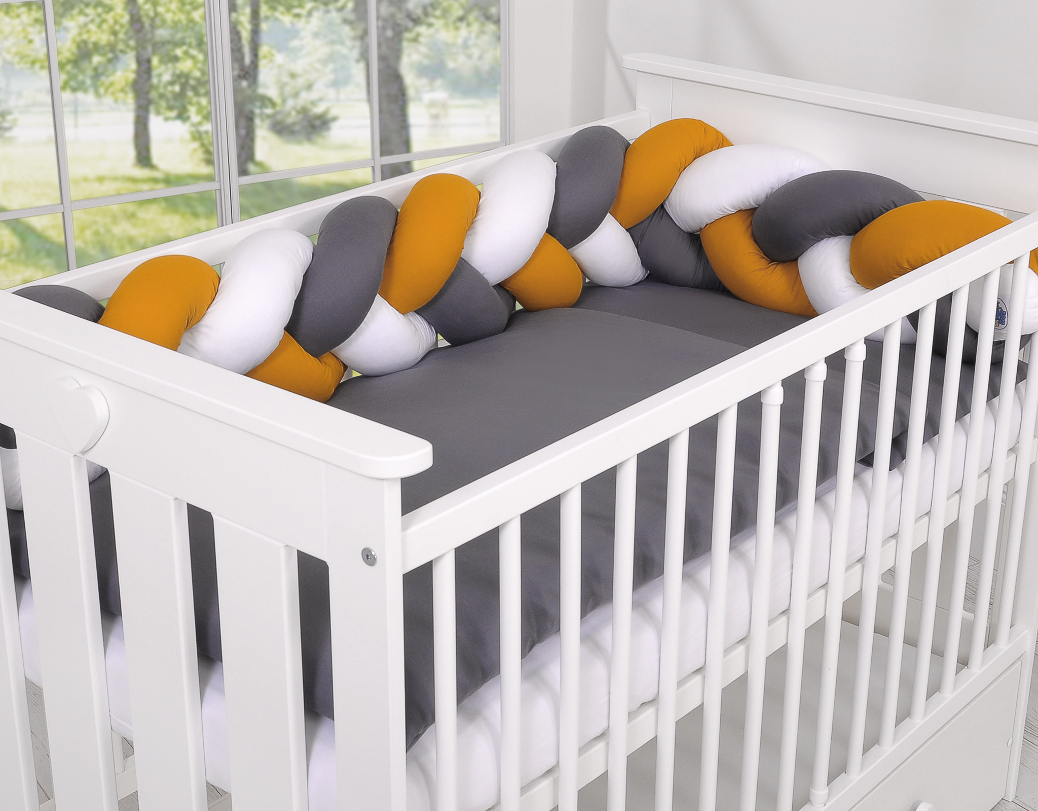 Etusivu » Letti kokoelma » Reunapehmuste Letti » Pinnasängyn reunapehmuste - Knot 180cm Valkoinen Antrasiitti Hunaja
