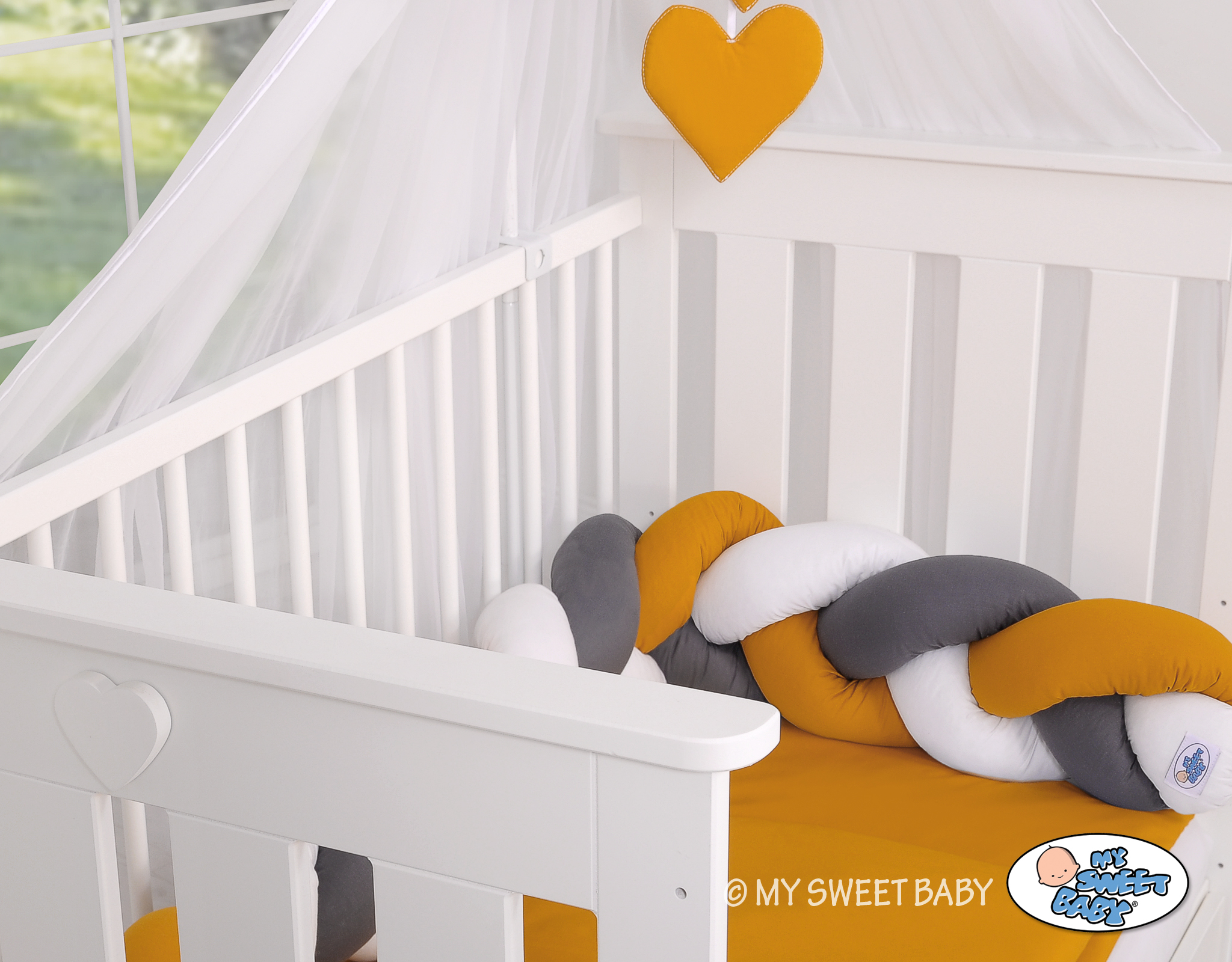 Pinnasängyn reunapehmuste - Knot 180cm Valkoinen Antrasiitti Hunaja