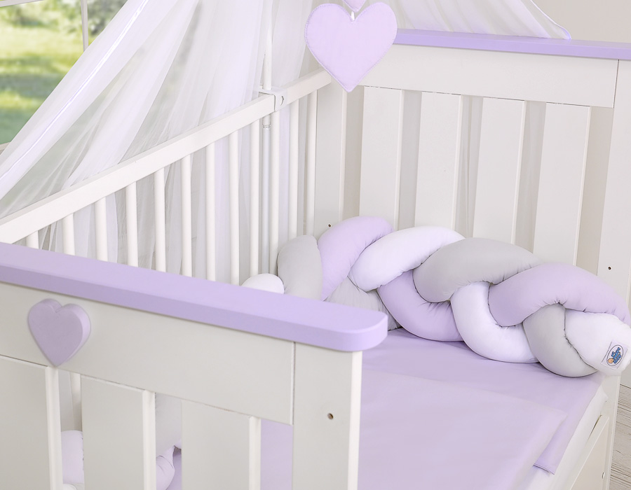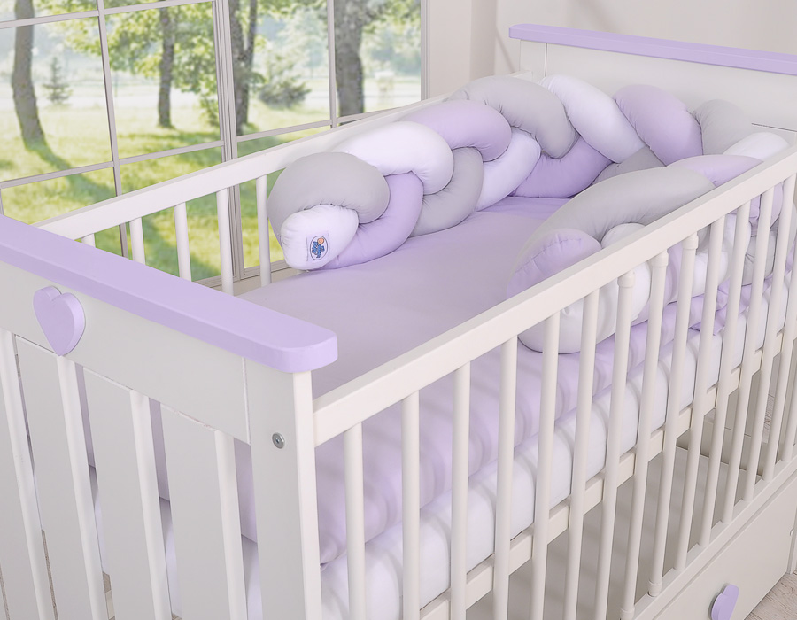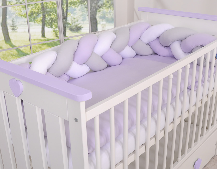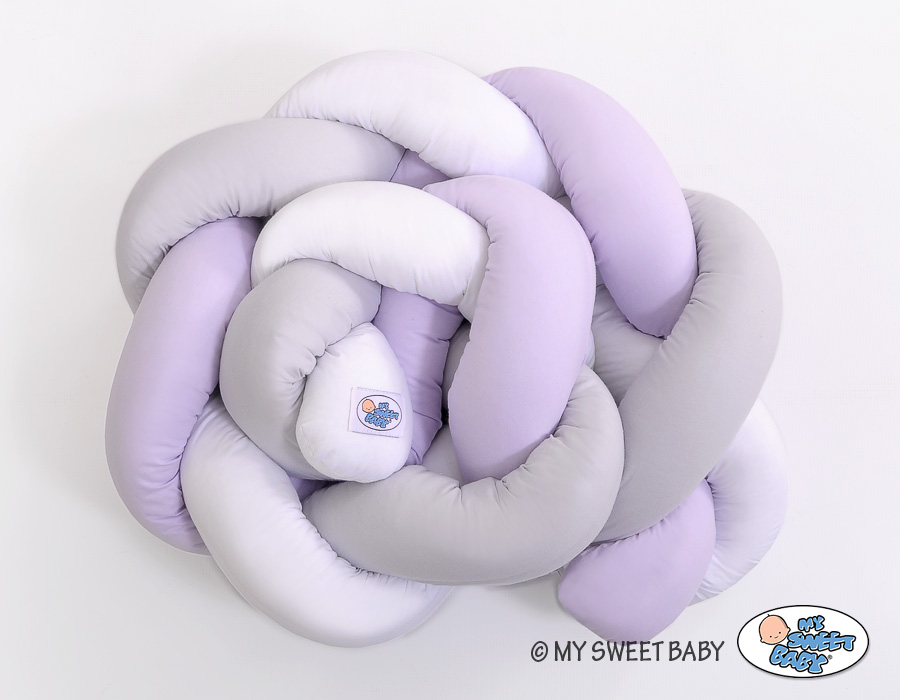Etusivu » Letti kokoelma » Reunapehmuste Letti » Pinnasängyn reunapehmuste - Knot 180cm Violetti Valkoinen Harmaa