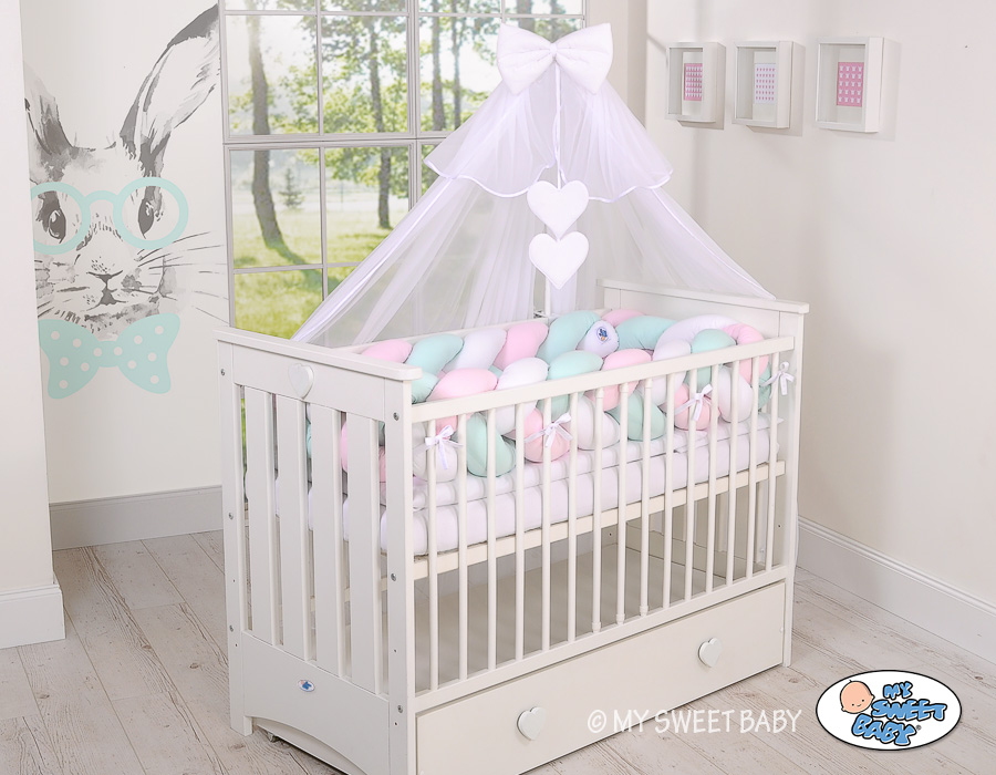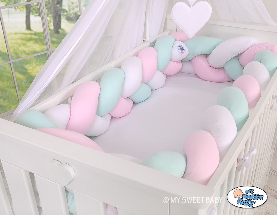 Pinnasängyn reunapehmuste - Knot XXL Minttu Vaaleanpunainen Valkoinen