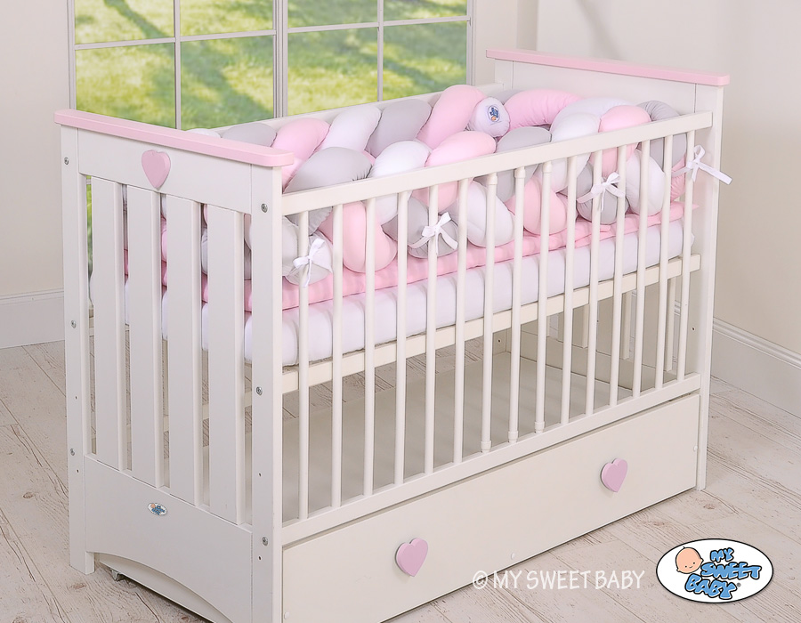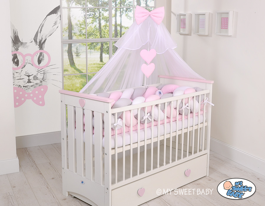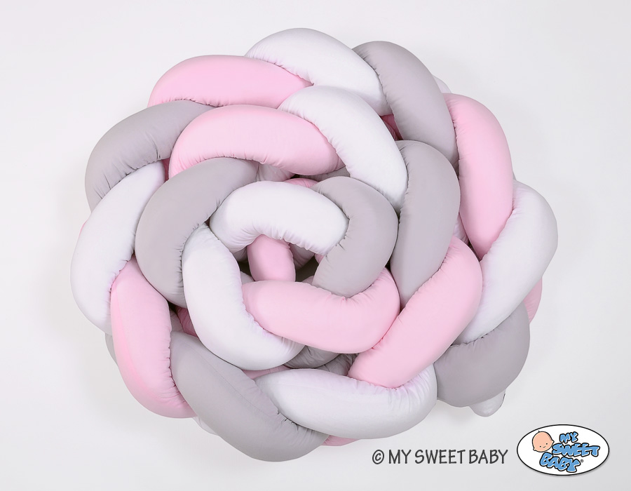 Etusivu » Letti kokoelma » Reunapehmuste Letti XXL » Pinnasängyn reunapehmuste - Knot XXL Vaaleanpunainen Valkoinen Harmaa