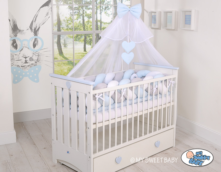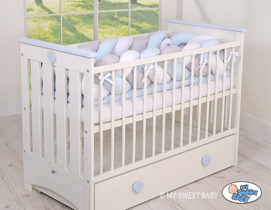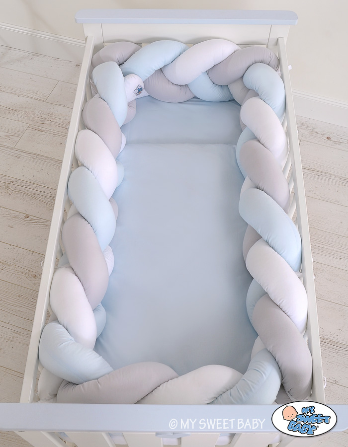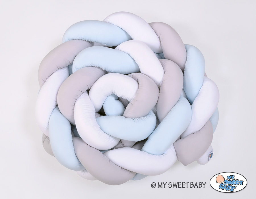 Etusivu » Letti kokoelma » Reunapehmuste Letti XXL » Pinnasängyn reunapehmuste - Knot XXL Valkoinen Harmaa Sininen