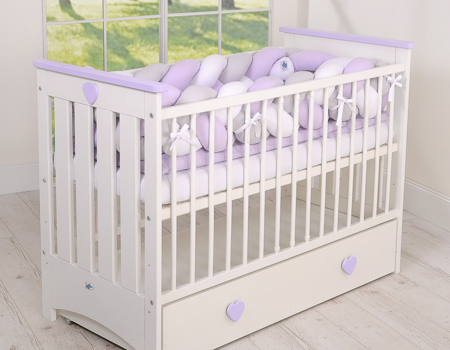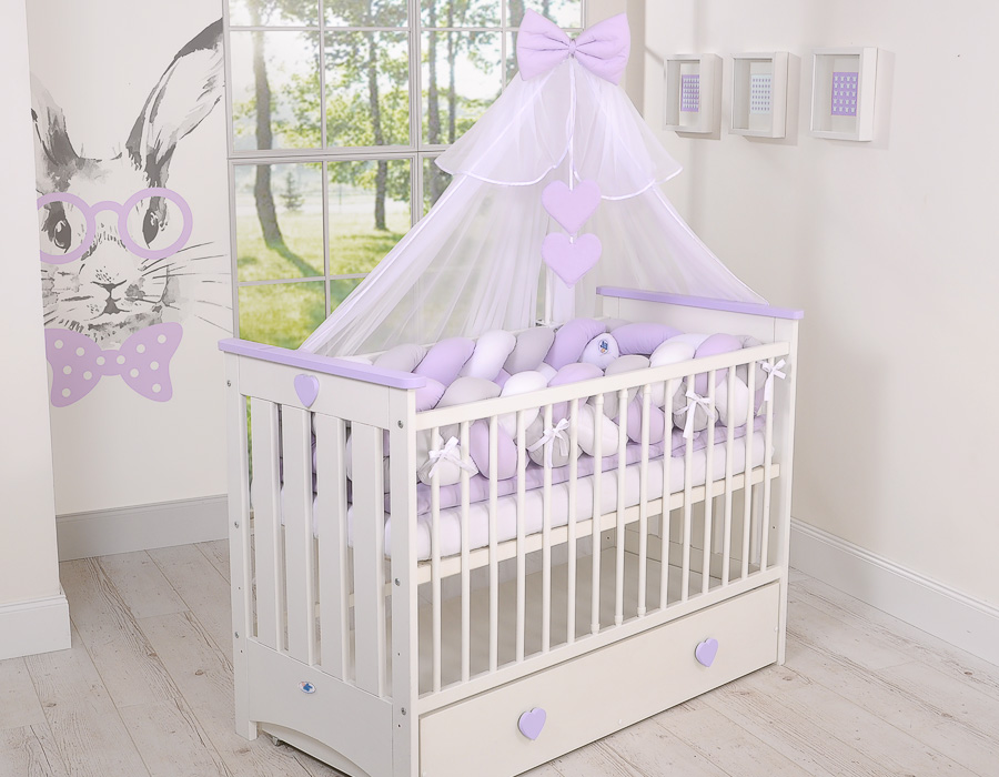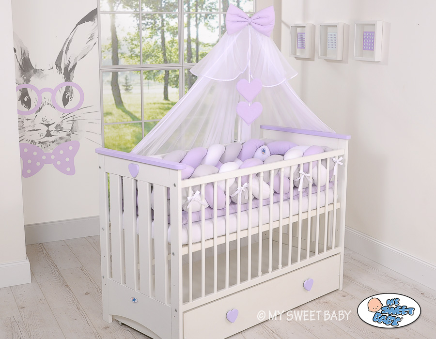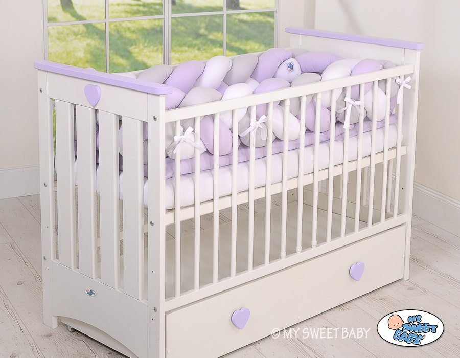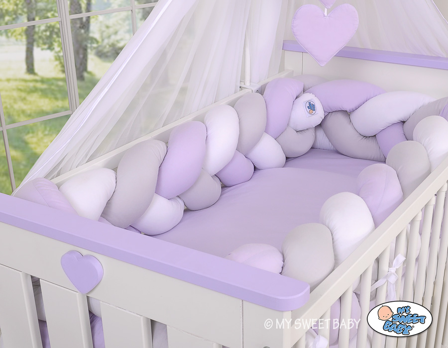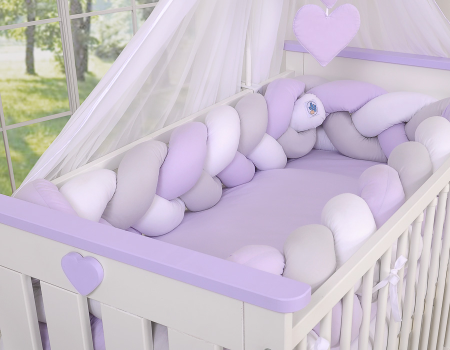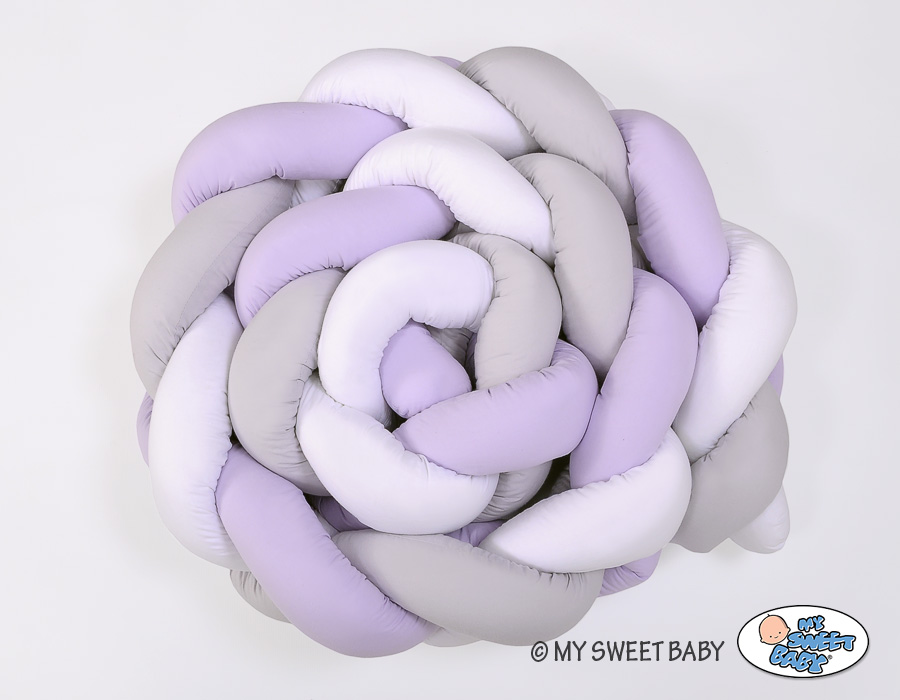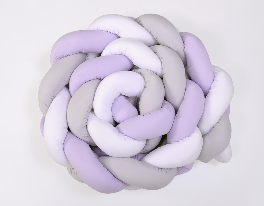 Etusivu » Letti kokoelma » Reunapehmuste Letti XXL » Pinnasängyn reunapehmuste - Knot XXL Violetti Valkoinen Harmaa