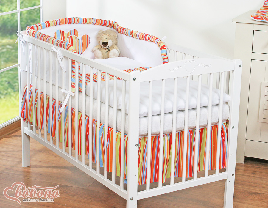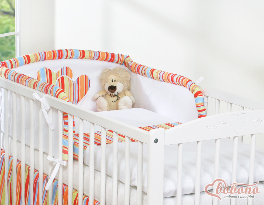 Etusivu » Vuodevaatesetit pinnasänkyyn » Vuodevaatesetit Sydämet » Vuodevaatesetit pinnasänkyyn 120cm Sydämet » Vauvan Sängyn Reunapehmuste » Pinnasängyn reunapehmuste - Leijuvat Sydämet Oranssi Raidat