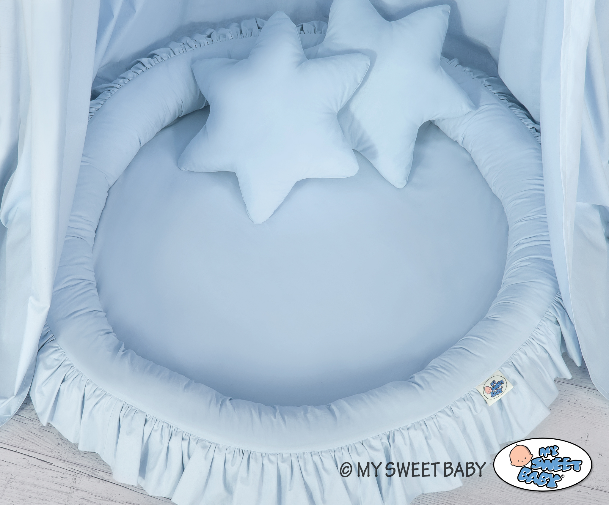 Ihana pesä röyhelöreunuksella. Käytännöllinen ja mukava leikkipesä. Pesämainen muoto sopii loistavasti lepäämiseen, leikkialustaksi vauvalle tai prinsessakatoksen alustaksi. Röyhelöreunuksinen pesä sopii vauvalle tämän ensihetkistä lähtien, aluksi turvallisena lepopaikkana ja unipesänä. Pehmeä reunus pitää vauvan turvallisesti reunojen sisäpuolella. Sopii moitteetta myös leikkialustaksi. Prinsessakatokseen yhdistettynä matto luo ihanan ja pehmeän alustan vaikka piilopaikaksi.
