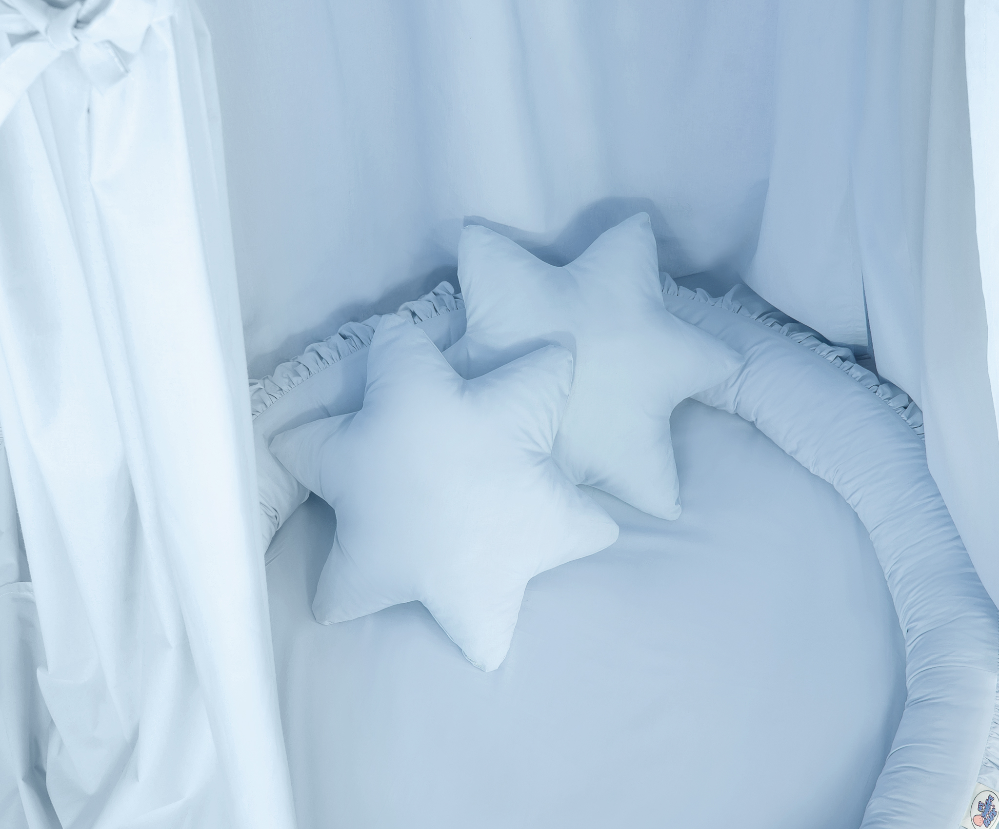 Lisäksi setissä mukana 2 tähden muotoista koristetyynyä, jotka ovat kaunis ja uniikki koriste lasten huoneeseen.