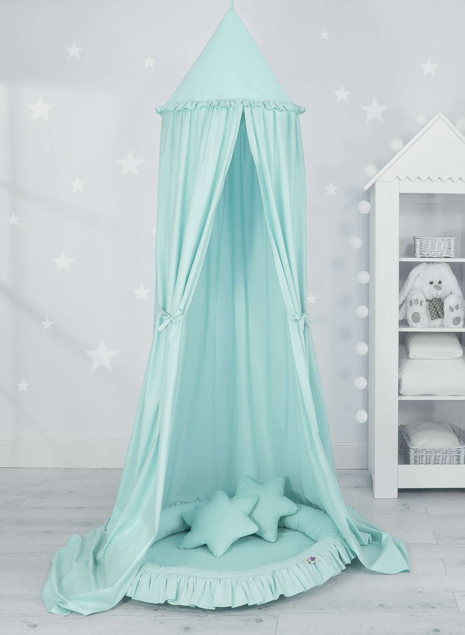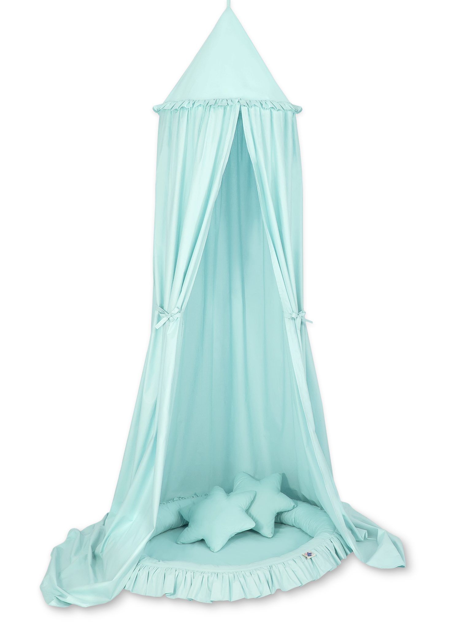 Etusivu » Vuodekatos » Setti: Vuodekatos + leikkipesä + tyynyt » Prinsessakatos-setti Minttu