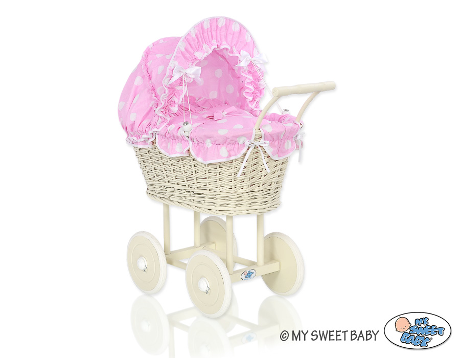 Punottu norsunluu nuken vaunu Norsunluu Vaaleanpunainen