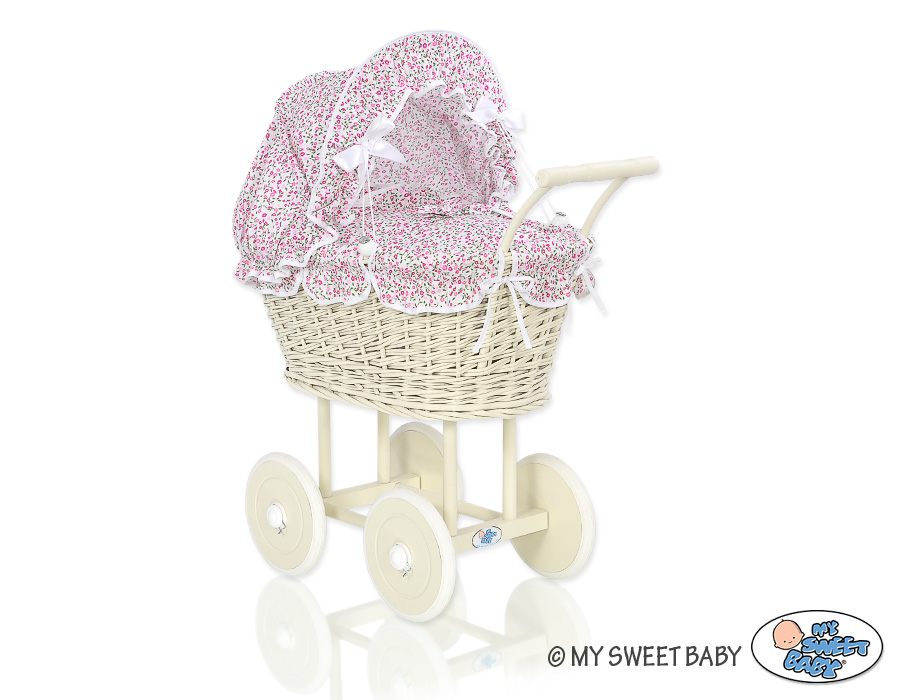 Etusivu » Lelut » Nukenvaunut » Punottu Nukenvaunut » Punottu Nukenvaunut Norsulu » Punottu norsunluu nuken vaunu Vaaleanpunainen Kukkaketo Kukat