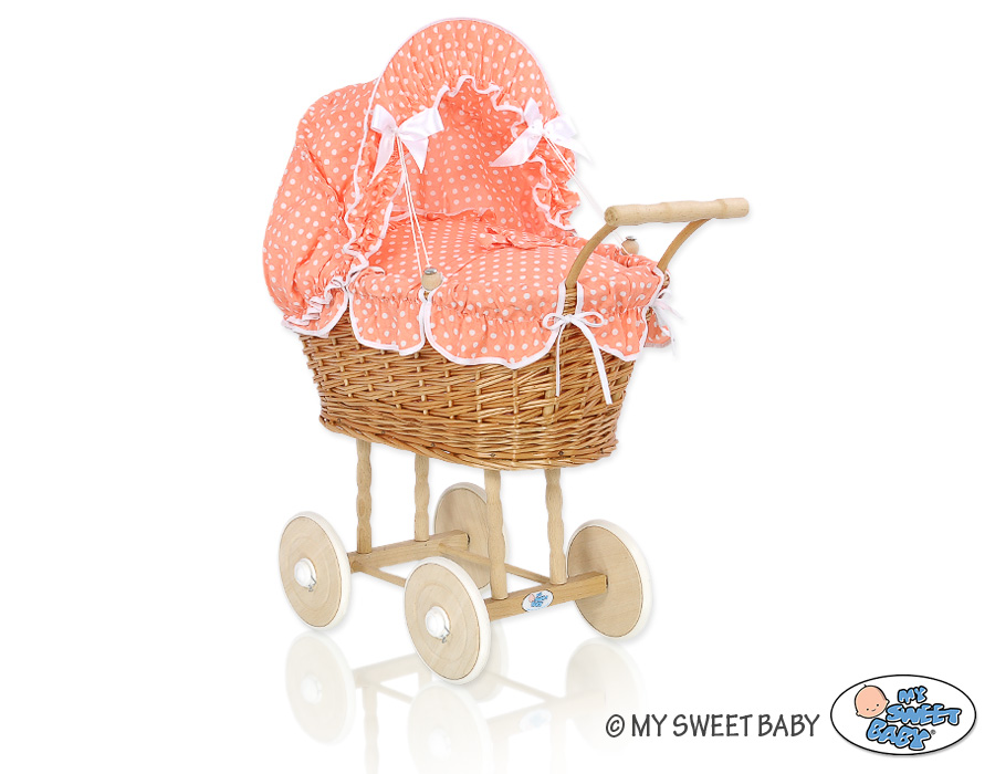 Etusivu » Lelut » Nukenvaunut » Punottu Nukenvaunut » Nukenvaunut koripunosta » Puunväriset nuken vaunut punotulla korilla