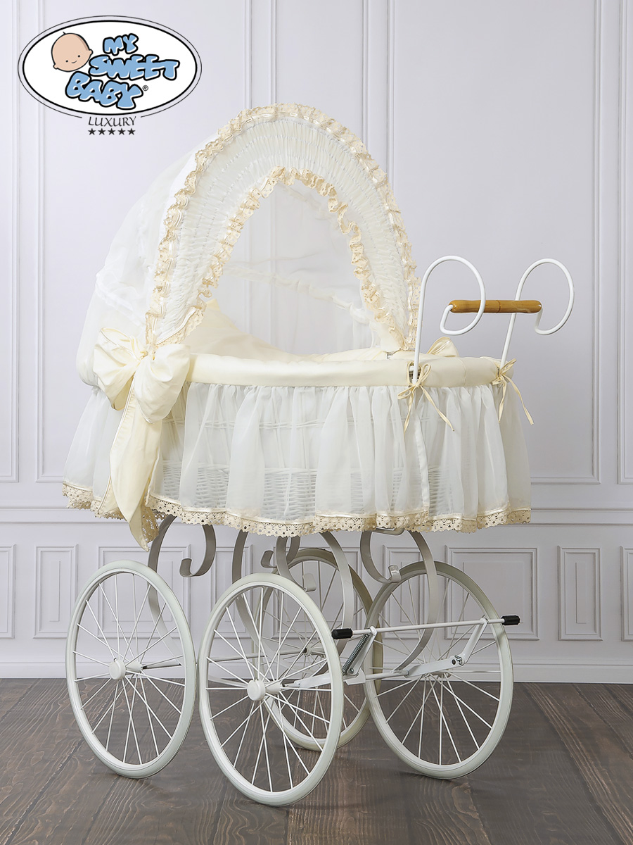 Etusivu » Vauvankori » Vauvankori Vanhanajan Tyyliä » Retrovaunu kehdolla » Retrotyylinen kehto pyörillä Norsunluu Elisa