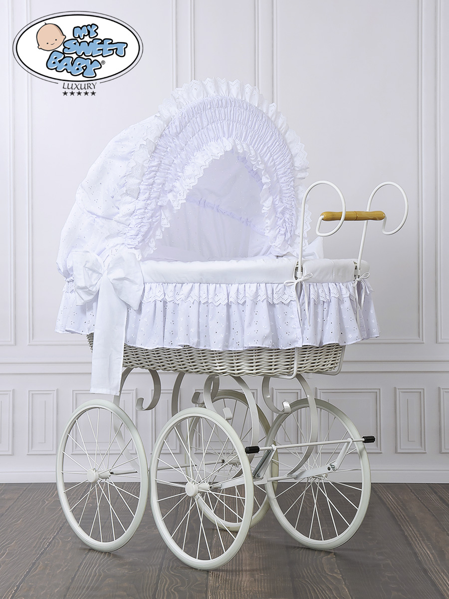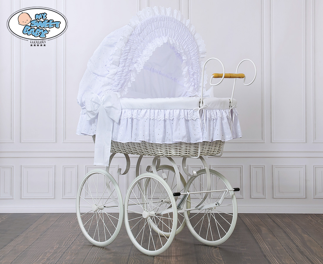 Retrotyylinen kehto käsityönä tehtyllä metallirungolla.
