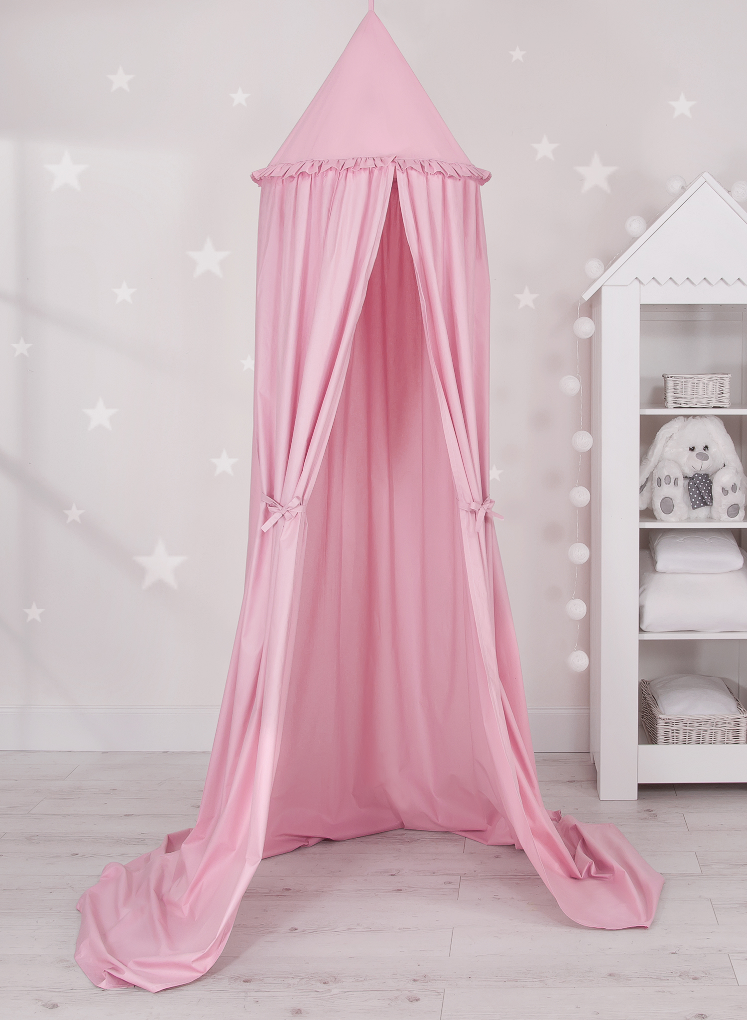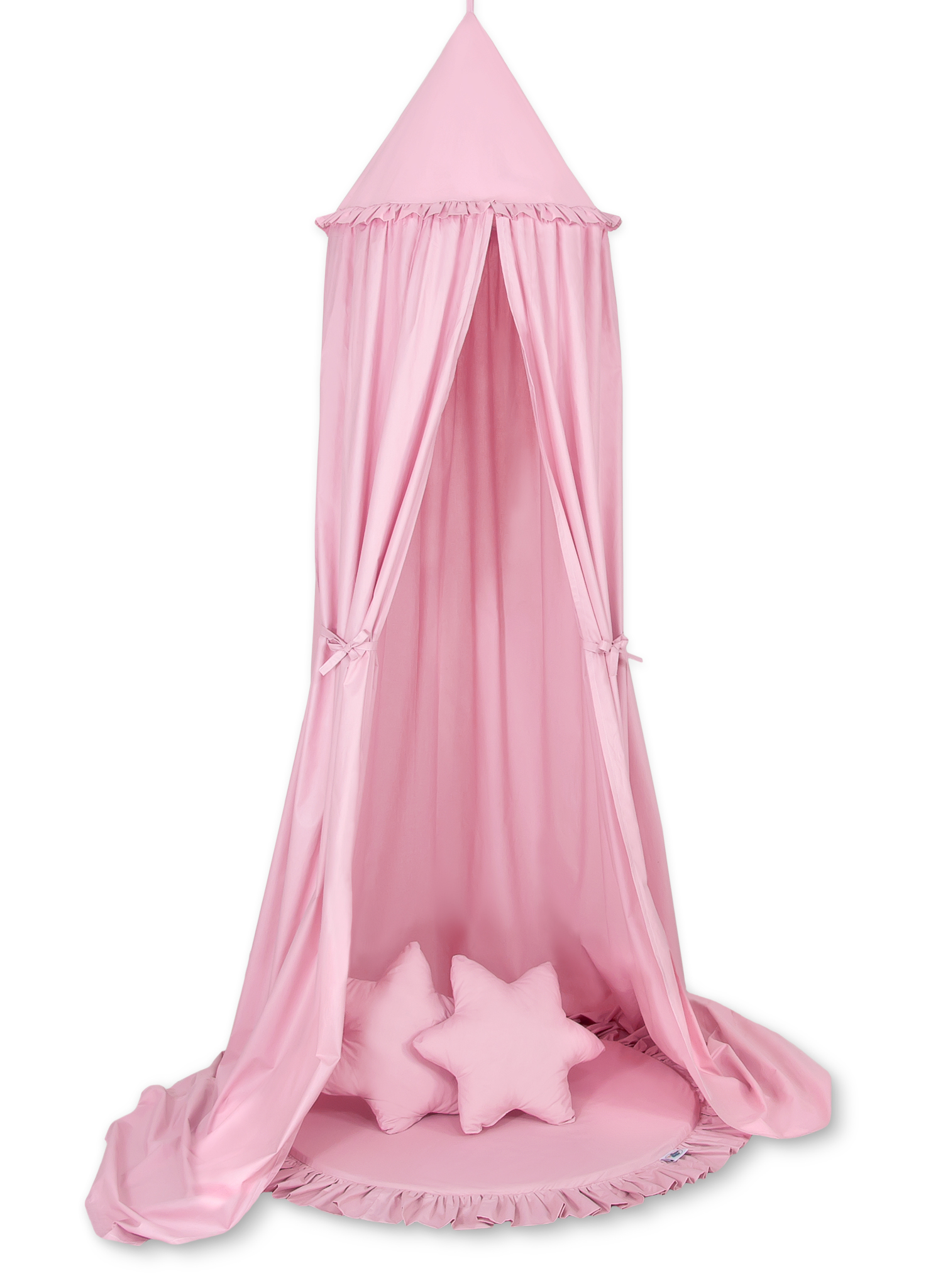 Huomiota herättävä ja kuninkaallisen tunnelman luova prinsessakatos on upea elementti lasten huoneeseen. Sopii pinnasänkyihin, lasten sänkyihin sekä sellaisenaan leikkipaikaksi. Pinnasängyn päällä prinsessakatos suojaa ylimääräiseltä melulta ja valolta, jotta nukkuminen tuntuu mukavammalta ja pesämäisemmältä. Katoksen saa vaivatta kattoon kiinni. Prinsessakatos on pituudeltaan 260cm, joten verhot ulottuvat lattialle saakka. Tästä saa jännittävän piilopaikan ja leikkipaikan vanhemmillekin lapsille. Prinsessakatos on valmistettu 100% puuvillasta (Okotex-sertifioitu). Sivuilla on käytännölliset rusetit, joilla verhot saa sidottua sivuille ja luo kauniin telttamaisen muodon. Yläosan reunus on poistettavista ja verhot sopii konepestäväksi 30 asteessa.