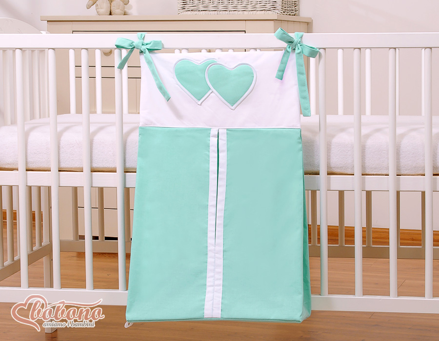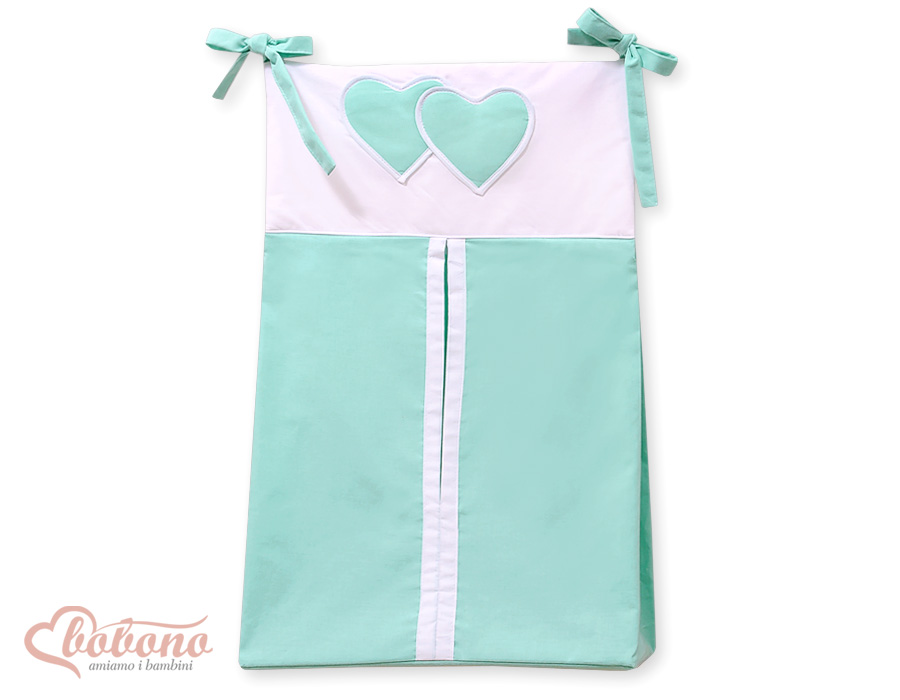 Etusivu » Vuodevaatesetit pinnasänkyyn » Vuodevaatesetit Sydämet » Vaippapussi » Säilytyspussi vaipoille - Hanging Hearts Minttu