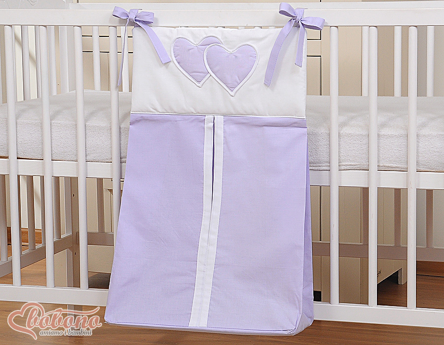 Etusivu » Vuodevaatesetit pinnasänkyyn » Vuodevaatesetit Sydämet » Vaippapussi » Säilytyspussi vaipoille - Hanging Hearts Violetti