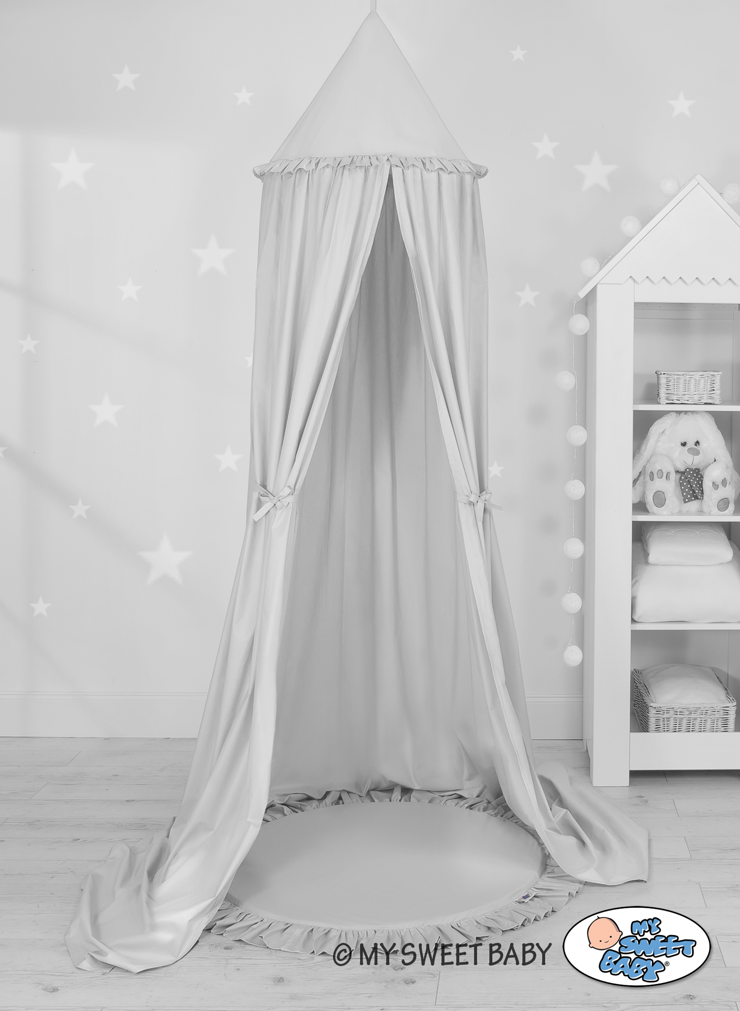 Etusivu » Vuodekatos » Setti: Vuodekatos + leikkimatto » Setti: Prinsessakatos + leikkimatto röyhelöreunuksella Harmaa