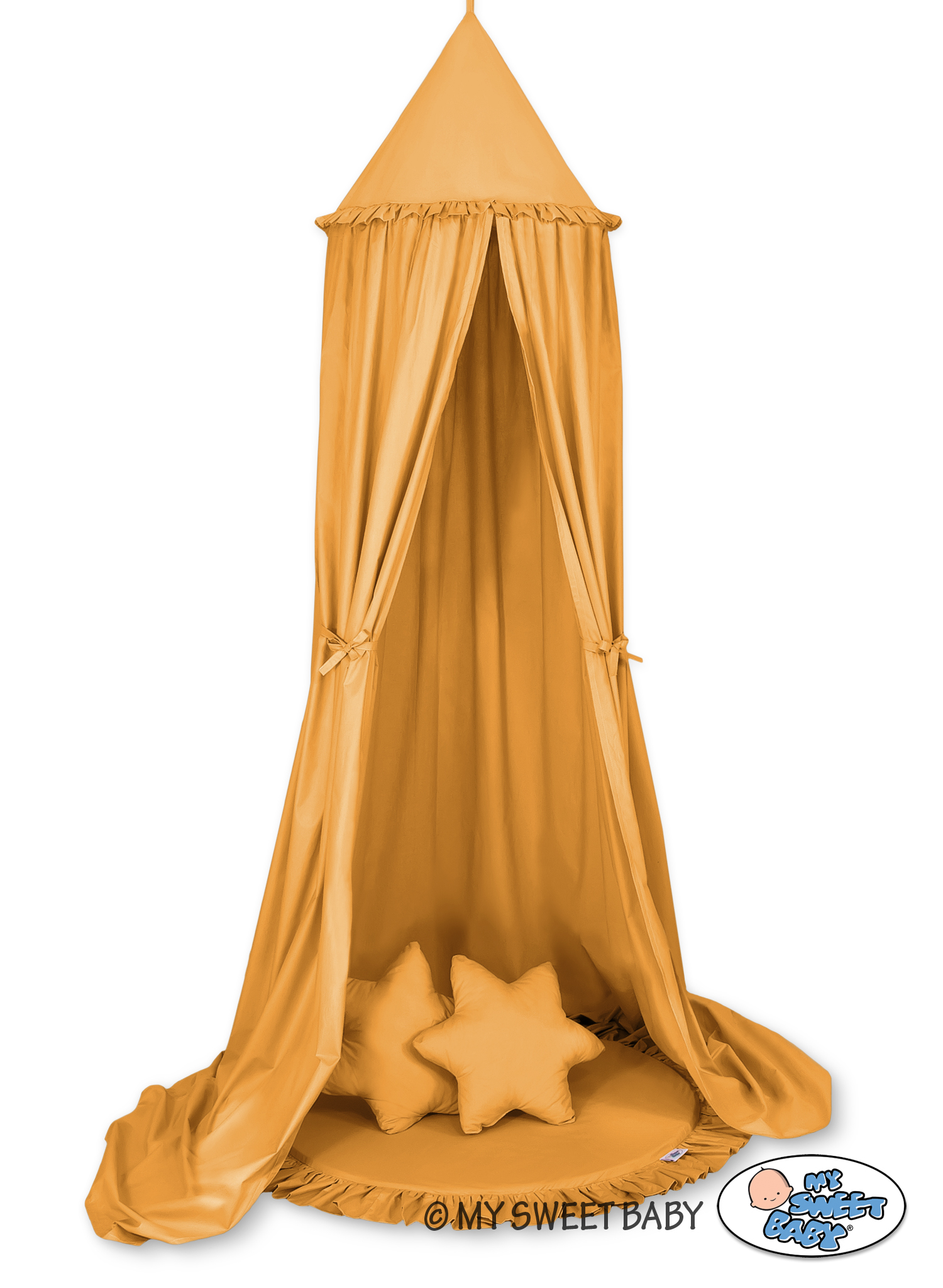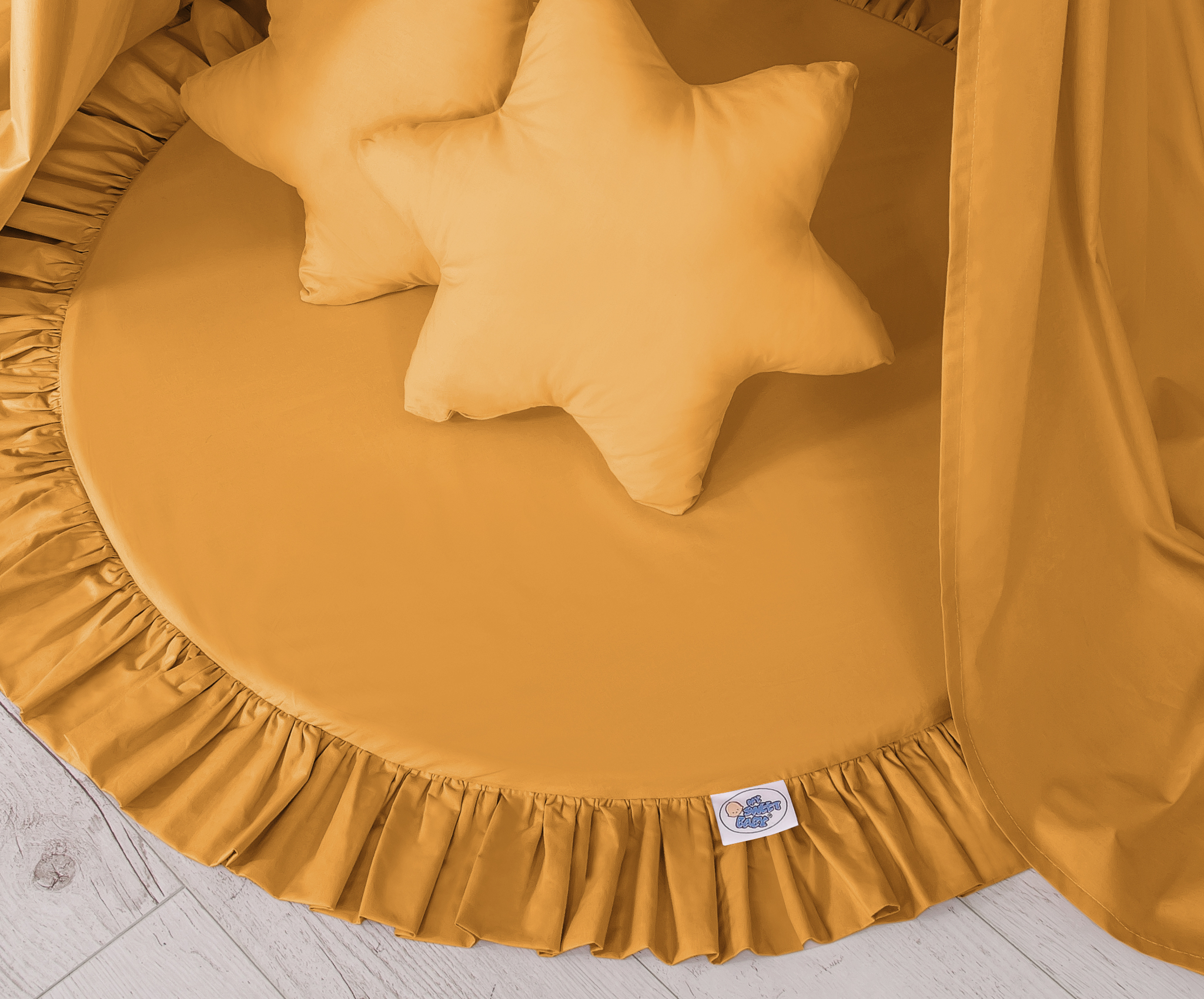 Etusivu » Vuodekatos » Setti: Vuodekatos + leikkimatto + tyynyt » Setti: Prinsessakatos + leikkimatto röyhelöreunuksella + tyynyt Hunaja