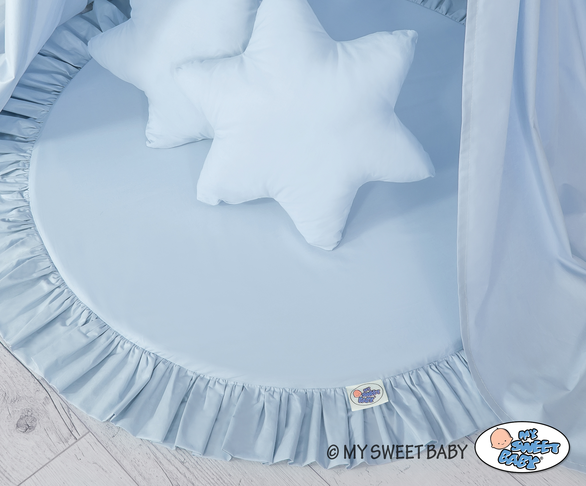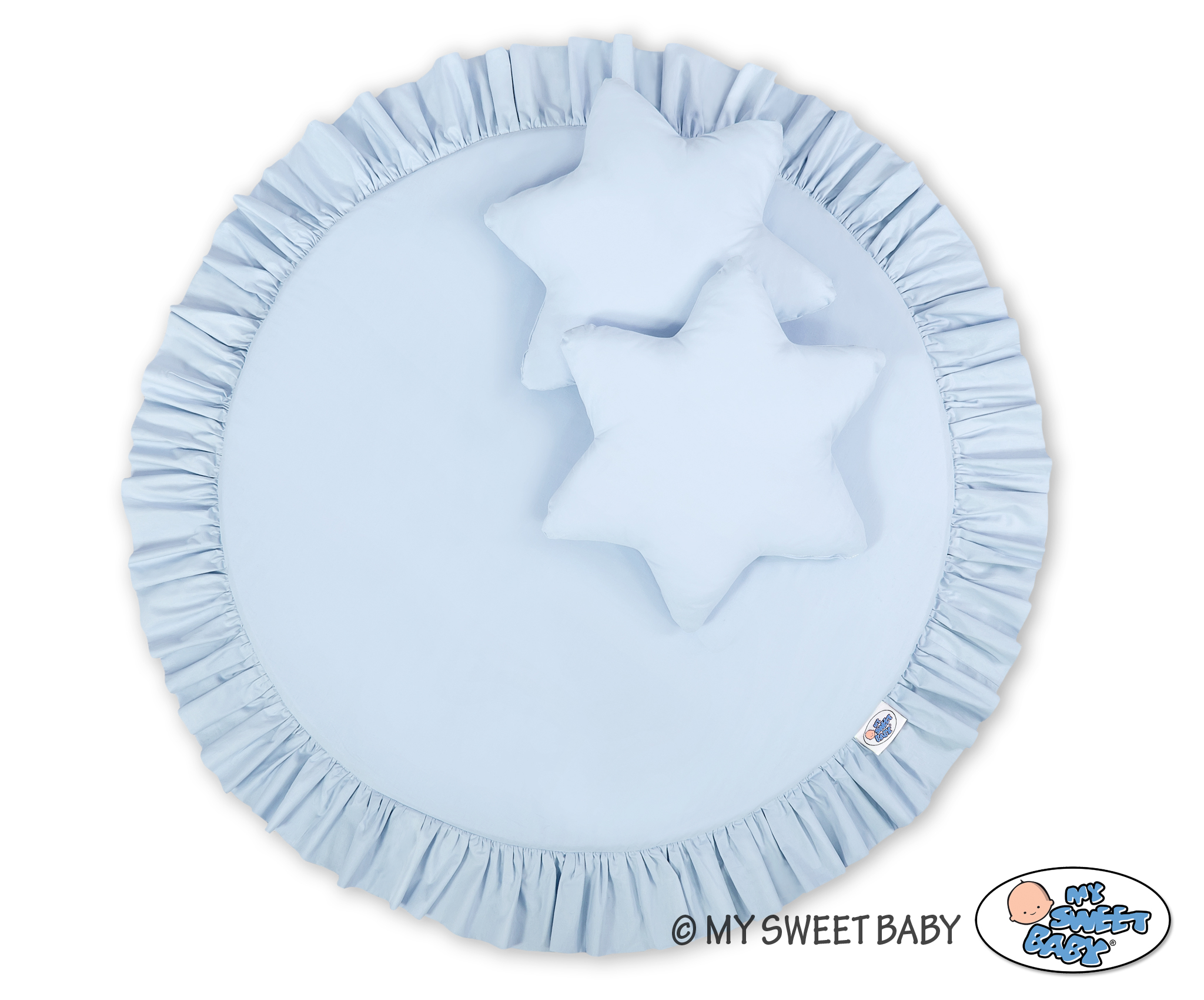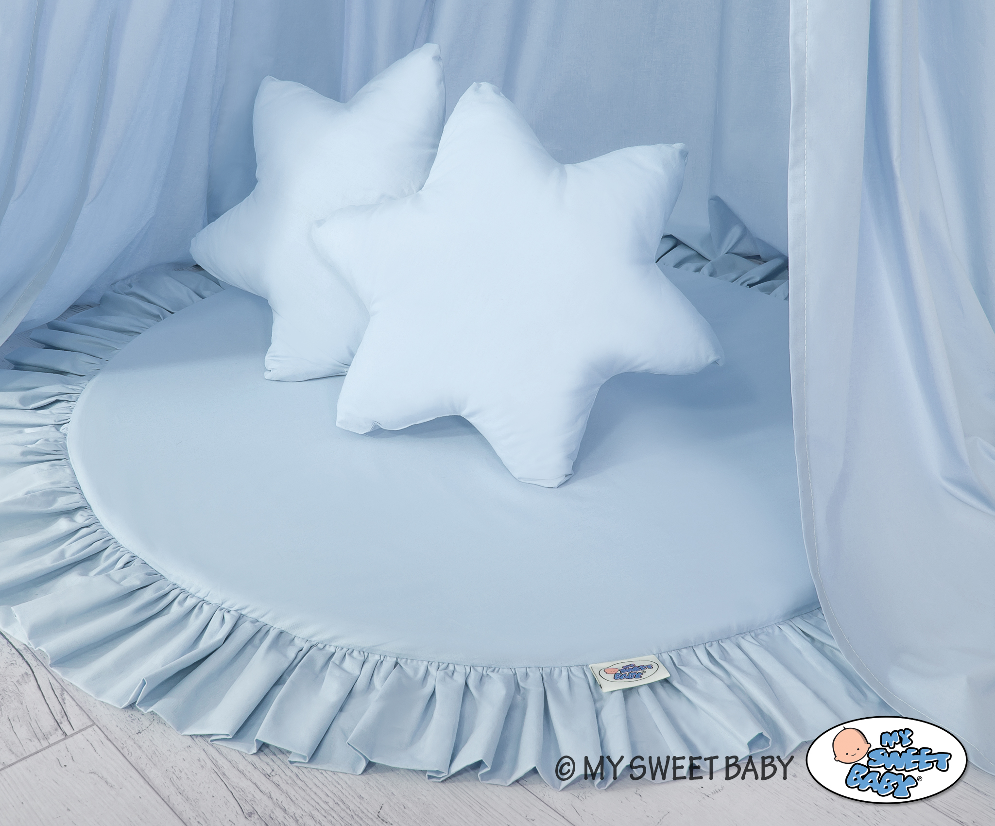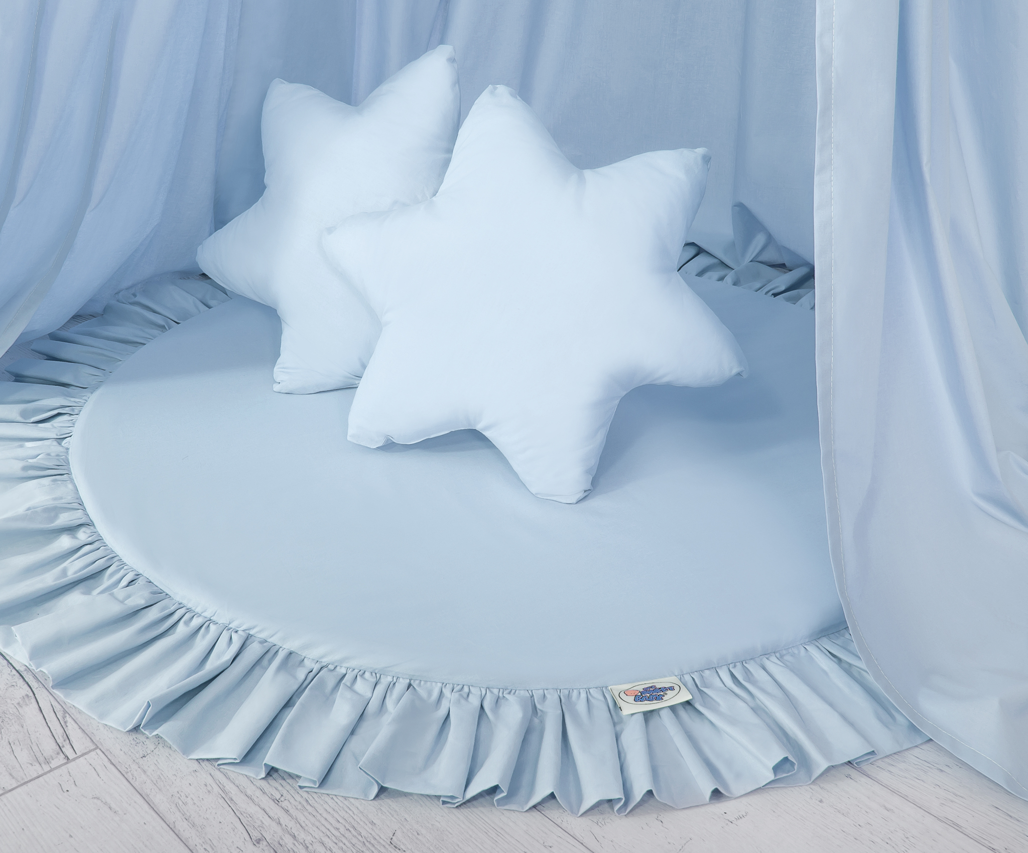 Etusivu » Vuodekatos » Setti: Vuodekatos + leikkimatto + tyynyt » Setti: Prinsessakatos + leikkimatto röyhelöreunuksella + tyynyt Sininen