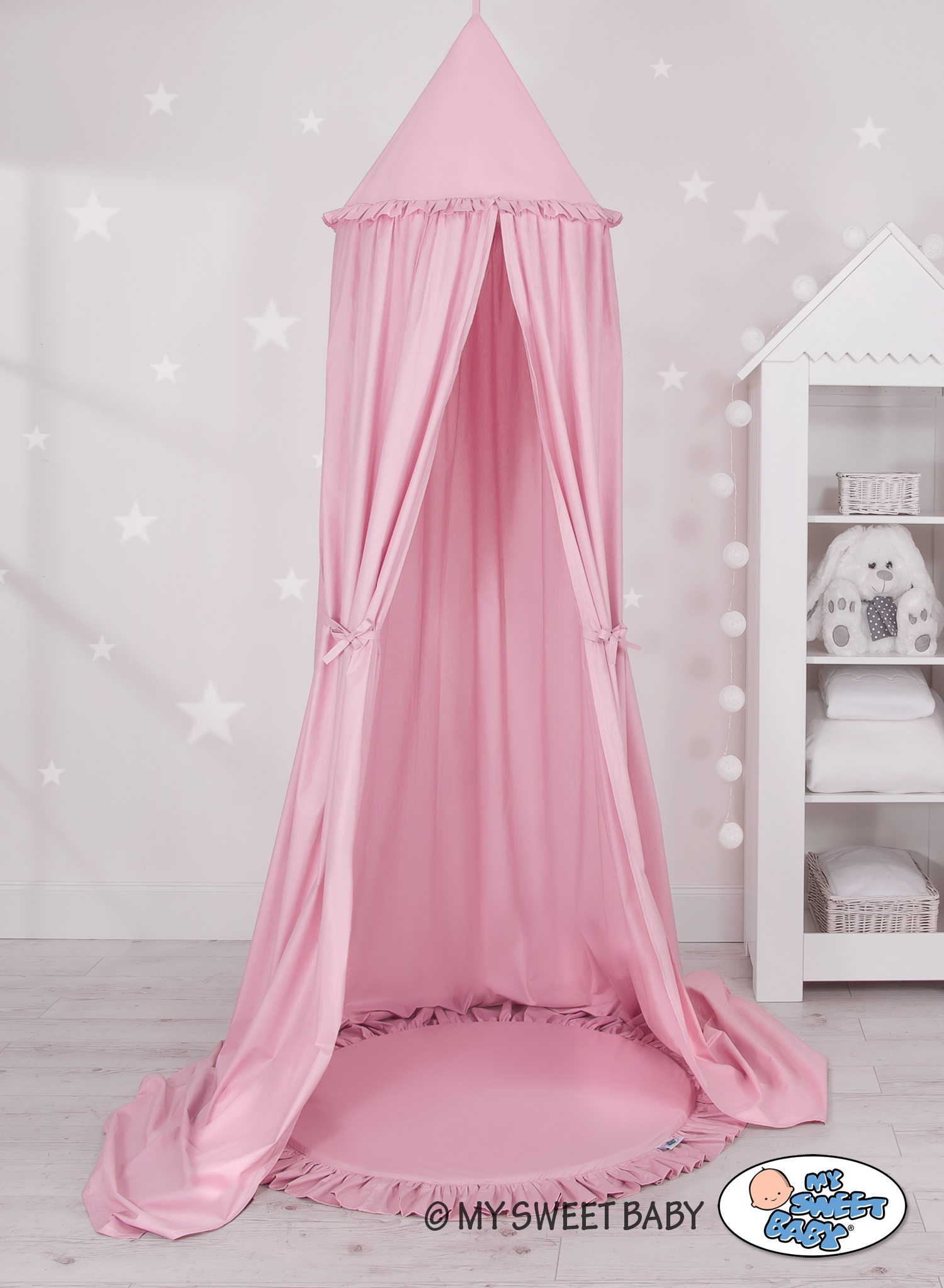 Huomiota herättävä ja kuninkaallisen tunnelman luova prinsessakatos on upea elementti lasten huoneeseen. Sopii pinnasänkyihin, lasten sänkyihin sekä sellaisenaan leikkipaikaksi. Pinnasängyn päällä prinsessakatos suojaa ylimääräiseltä melulta ja valolta, jotta nukkuminen tuntuu mukavammalta ja pesämäisemmältä. Katoksen saa vaivatta kattoon kiinni. Prinsessakatos on pituudeltaan 260cm, joten verhot ulottuvat lattialle saakka. Tästä saa jännittävän piilopaikan ja leikkipaikan vanhemmillekin lapsille. Prinsessakatos on valmistettu 100% puuvillasta (Okotex-sertifioitu). Sivuilla on käytännölliset rusetit, joilla verhot saa sidottua sivuille ja luo kauniin telttamaisen muodon. Yläosan reunus on poistettavista ja verhot sopii konepestäväksi 30 asteessa.