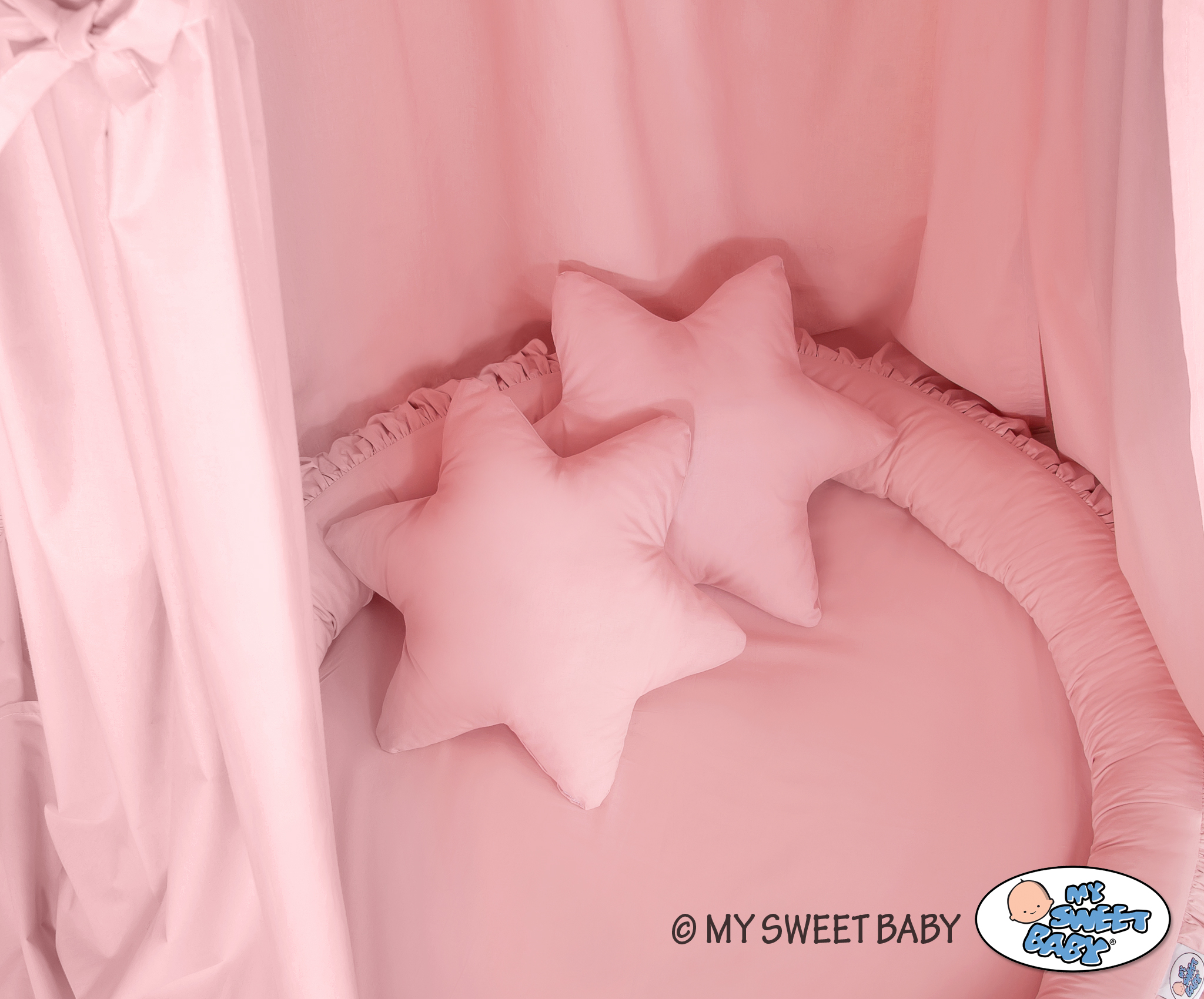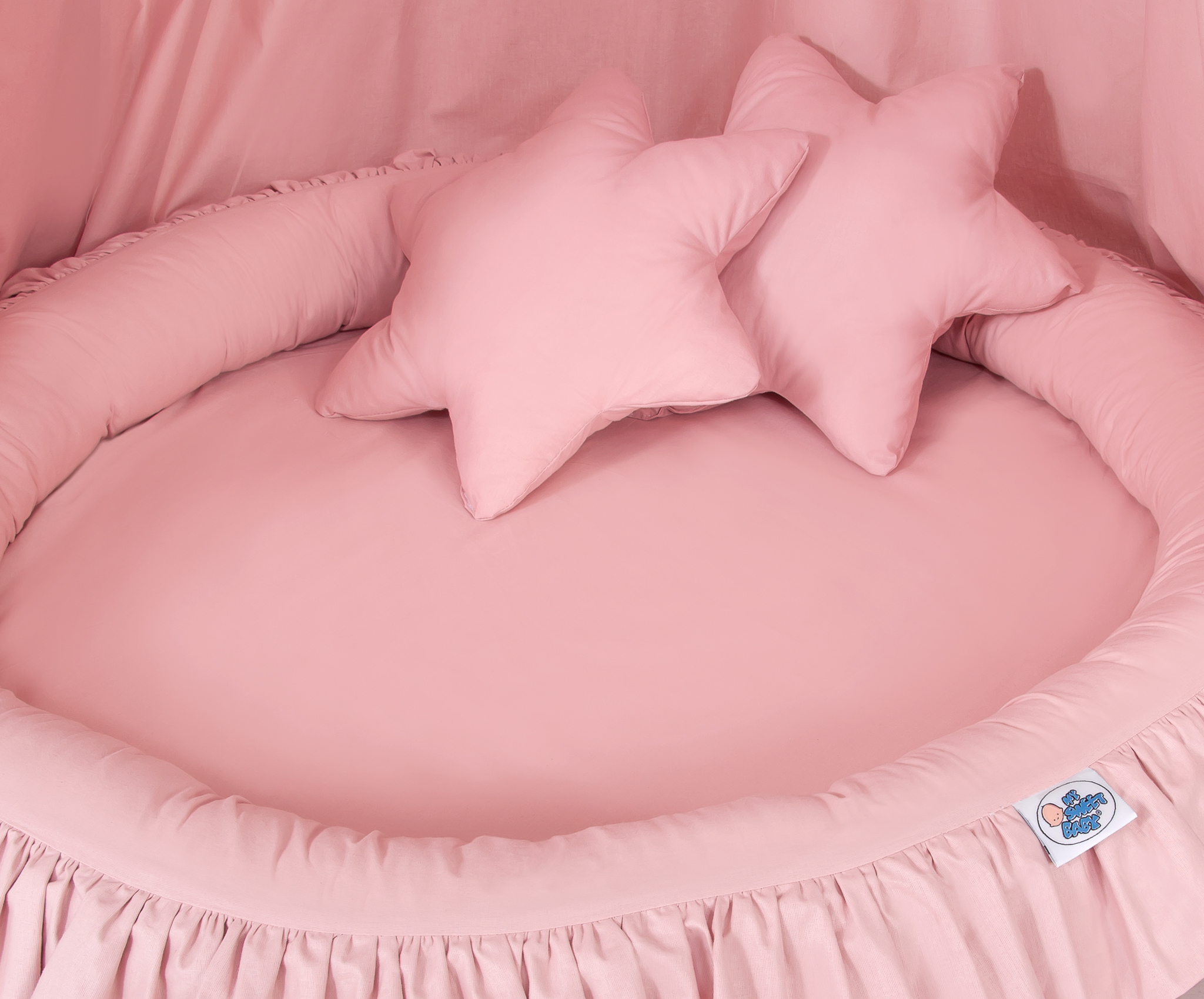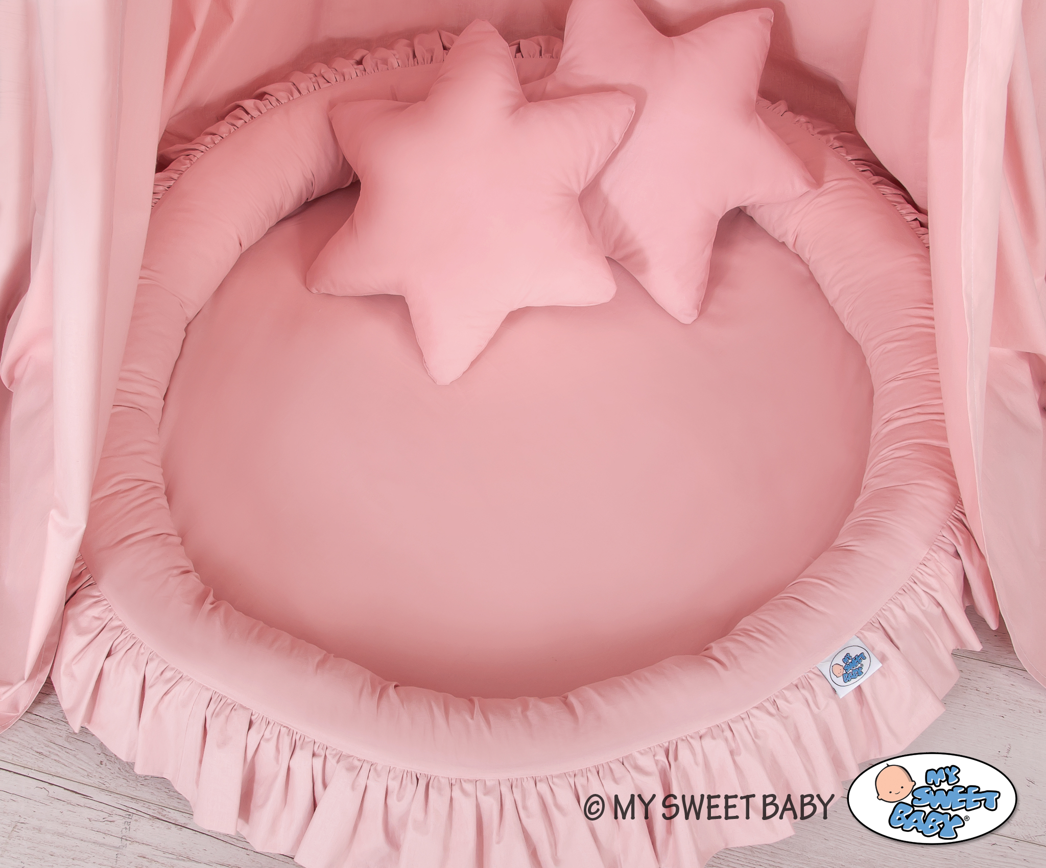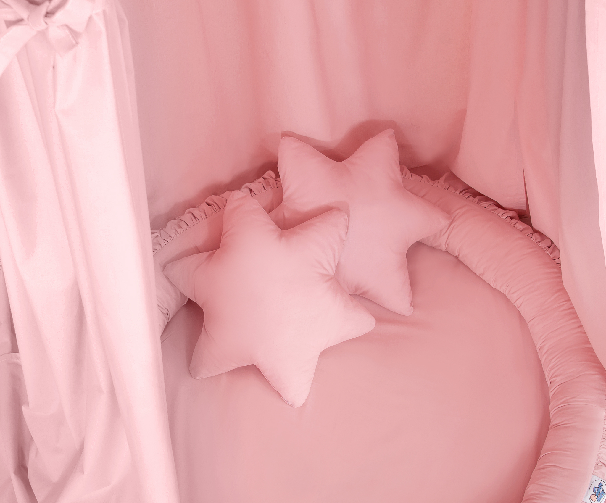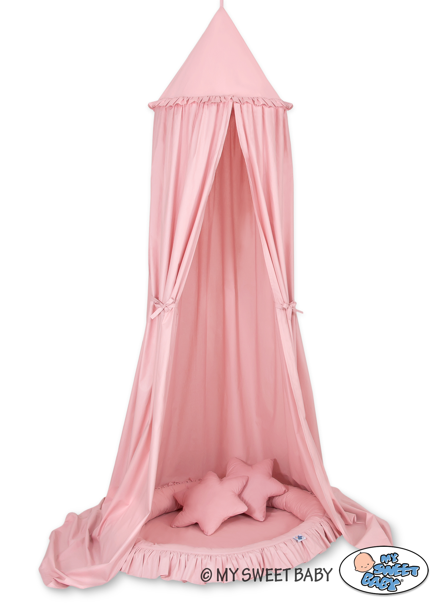 Etusivu » Vuodekatos » Setti: Vuodekatos + leikkipesä + tyynyt » Setti: Prinsessakatos - leikkipesä röyhelöreunuksella + tyynyt Pastellinvaaleanpunainen