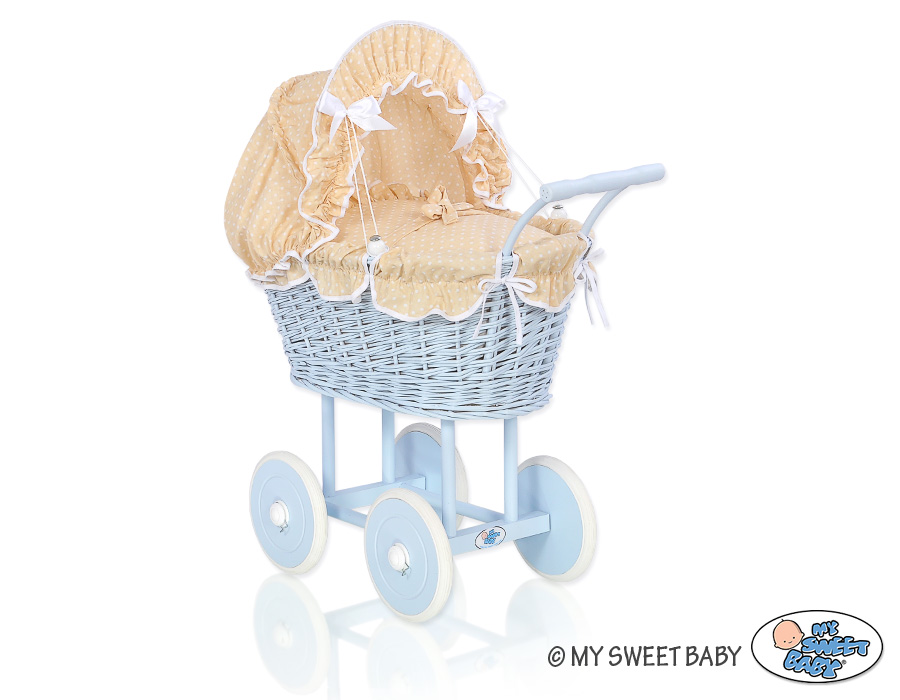 Etusivu » Lelut » Nukenvaunut » Punottu Nukenvaunut » Punottu Nukenvaunut Sininen » Sininen vaunu punotulla korilla nukelle Valkoinen Beige Sininen