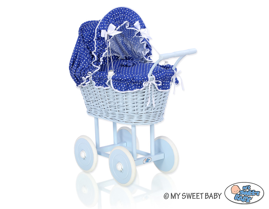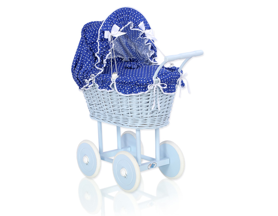 Etusivu » Lelut » Nukenvaunut » Punottu Nukenvaunut » Punottu Nukenvaunut Sininen » Siniset nuken vaunu korikehdolla Laivastonsininen Sininen