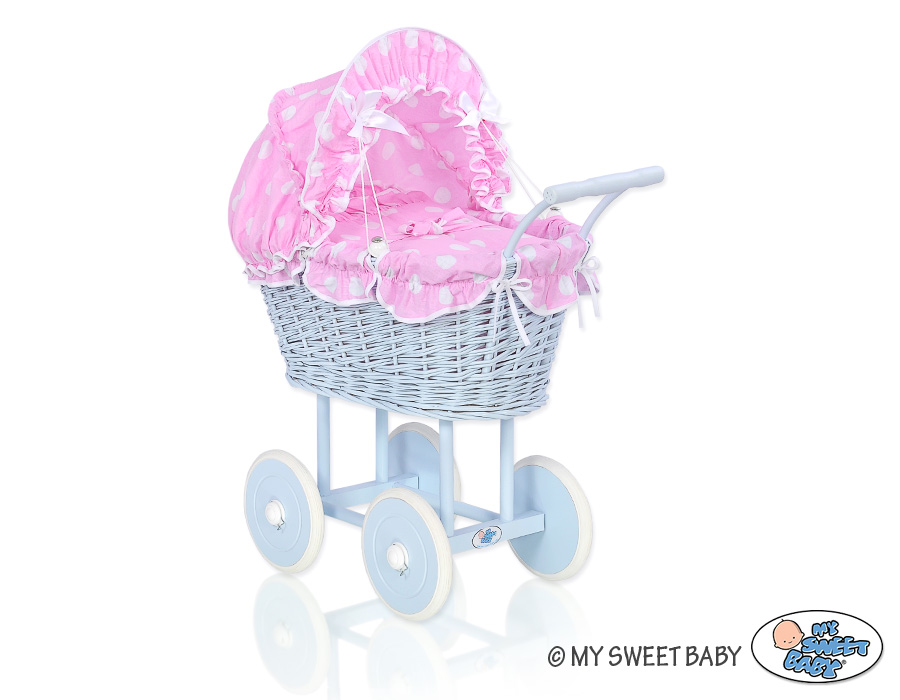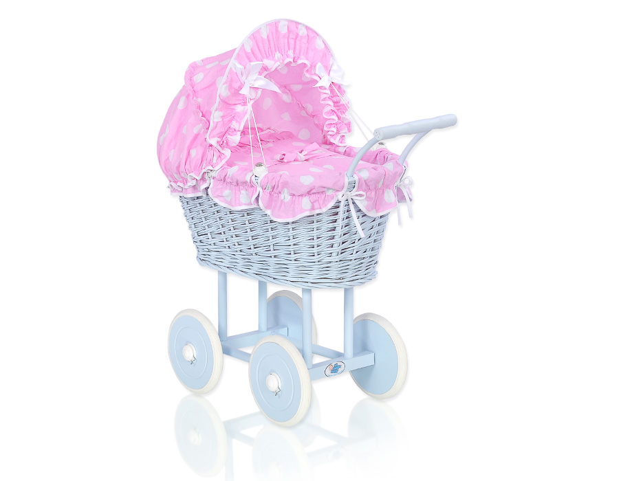 Siniset nuken vaunu punotulla korilla ja pehmusteilla Vaaleanpunainen SininenSiniset nuken vaunu punotulla korilla ja pehmusteilla Vaaleanpunainen SininenSiniset nuken vaunu punotulla korilla ja pehmusteilla Vaaleanpunainen Sininen
