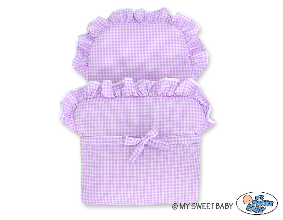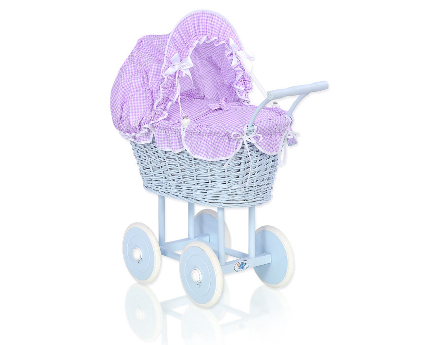 Siniset nuken vaunu punotulla korilla ja pehmusteilla Violetti Sininen Ruutukuvio