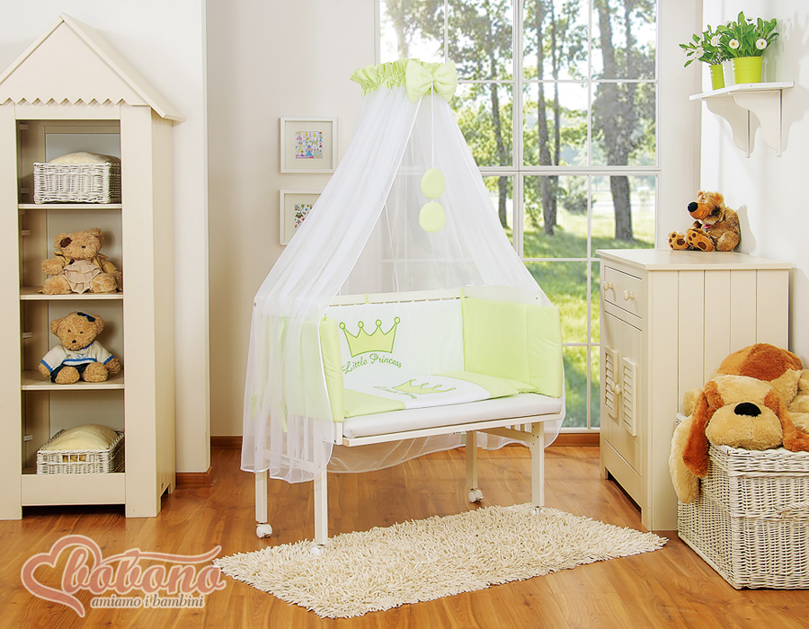Etusivu » Pinnasänkyyn 120x60 cm » Vauvan sivusänky » Sivusänky patjalla ja vuodevaatesetillä » Sivusänky + patja + vuodevaatesetti - Little Prince/Princess Vihreä