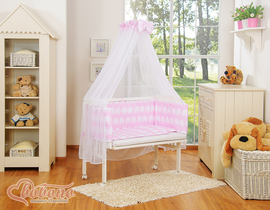- Sivusänky (4 sivua, puupalkki metallikahvalla kiinnitettäväksi vanhempien sänkyyn)
