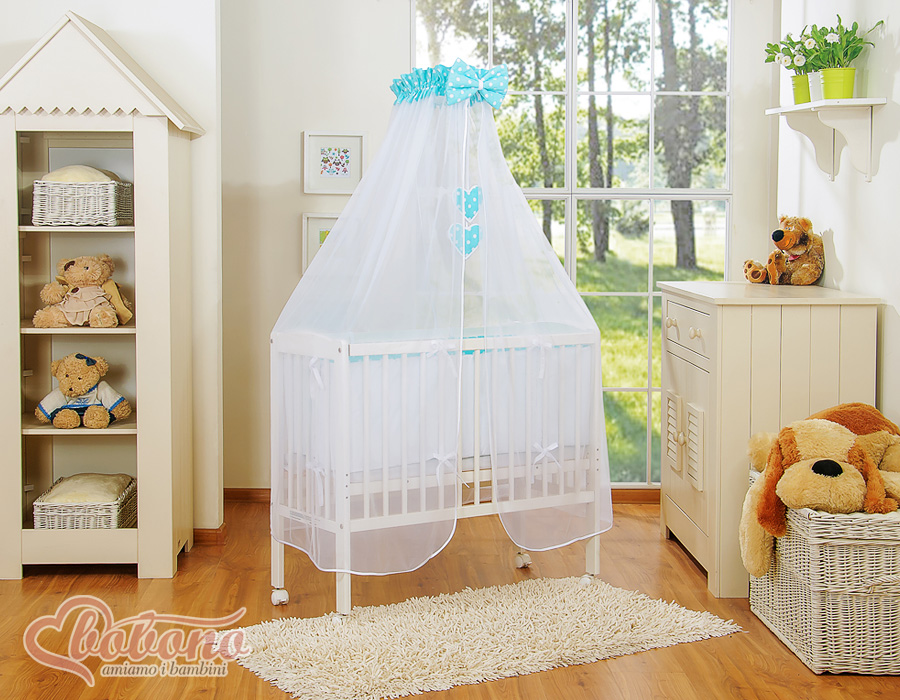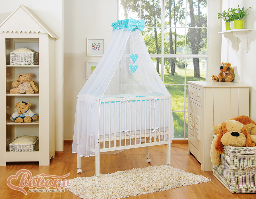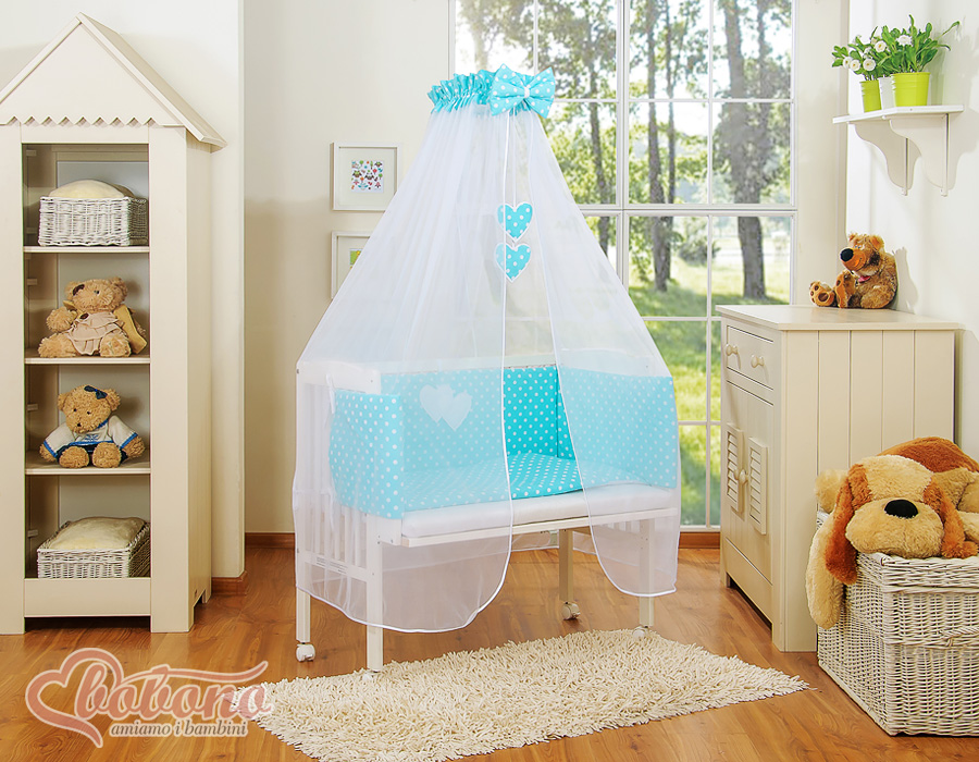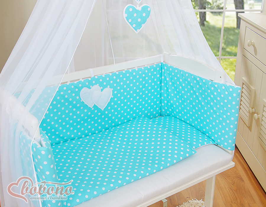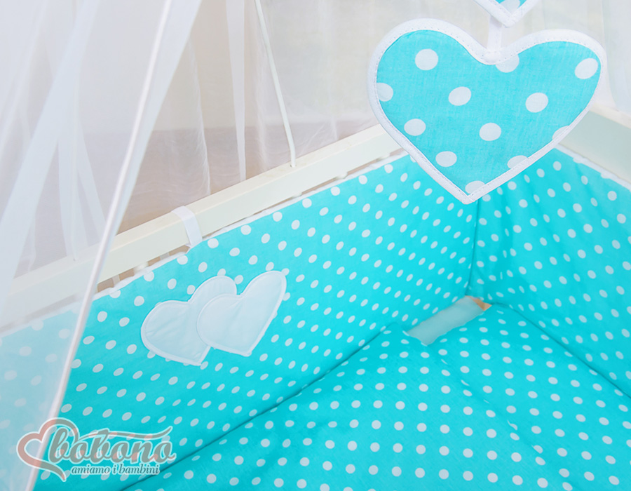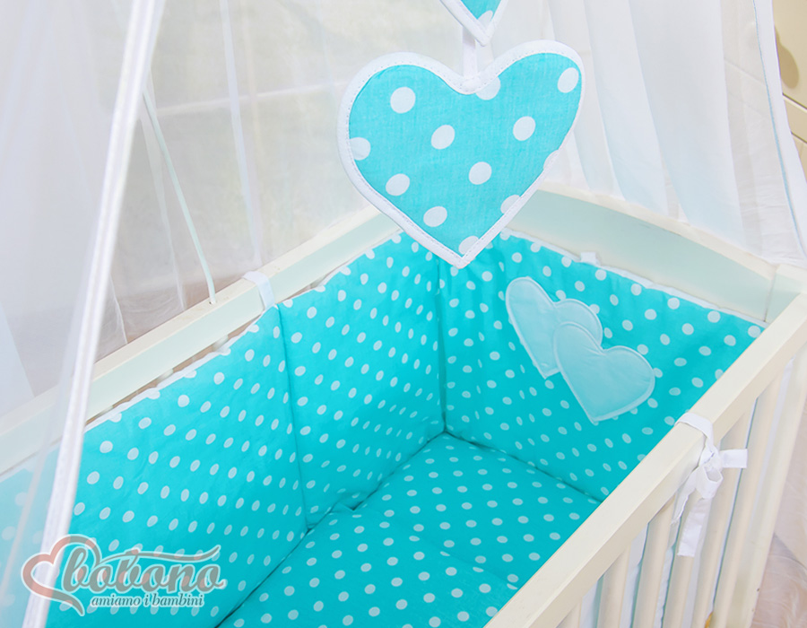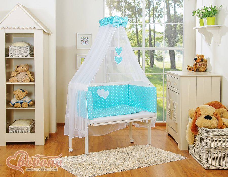 Etusivu » Pinnasänkyyn 120x60 cm » Vauvan sivusänky » Sivusänky patjalla ja vuodevaatesetillä » Sivusänky patjalla ja vuodevaatesetillä - Little Prince/Princess Turkoosi Valkoisilla Pilkuilla
