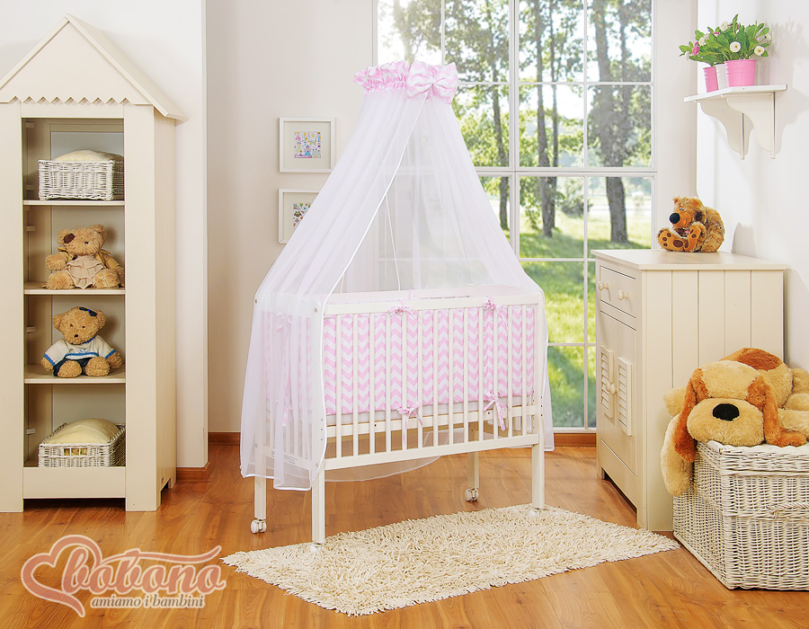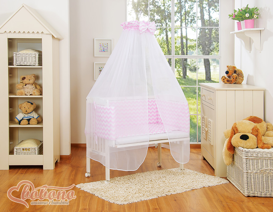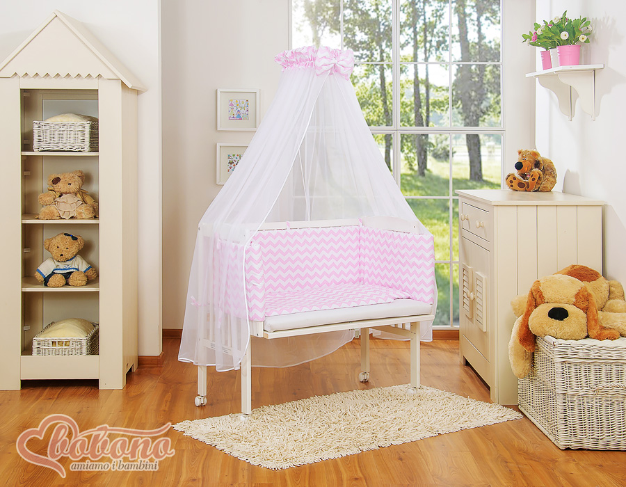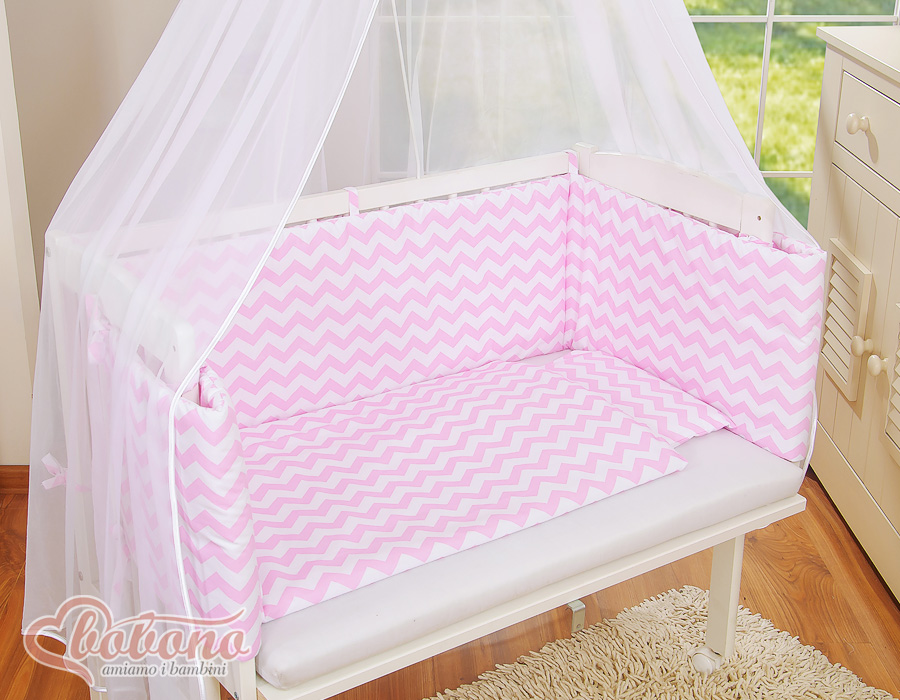 Sivusänky patjalla ja vuodevaatesetillä - Little Prince/Princess Vaaleanpunainen Siksak